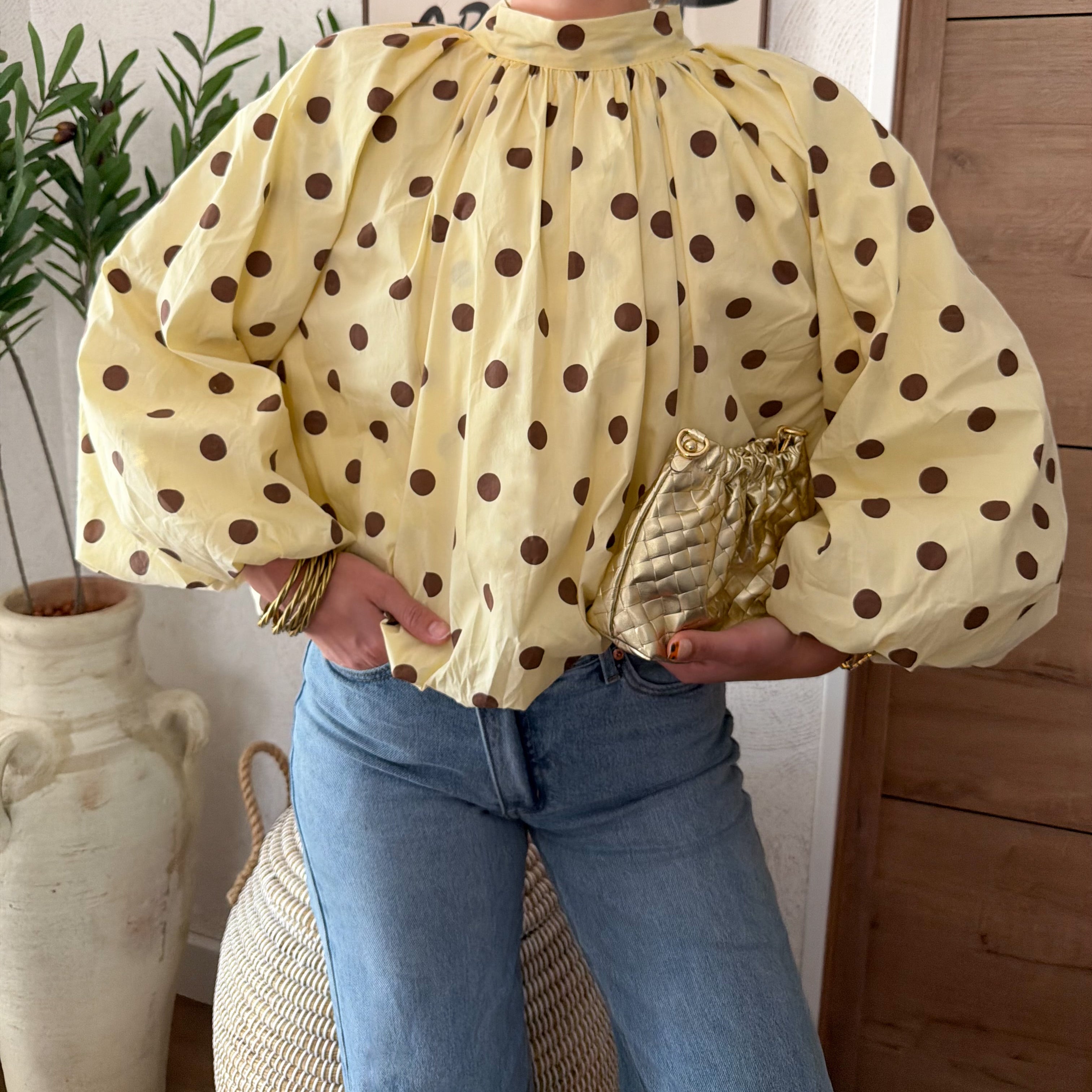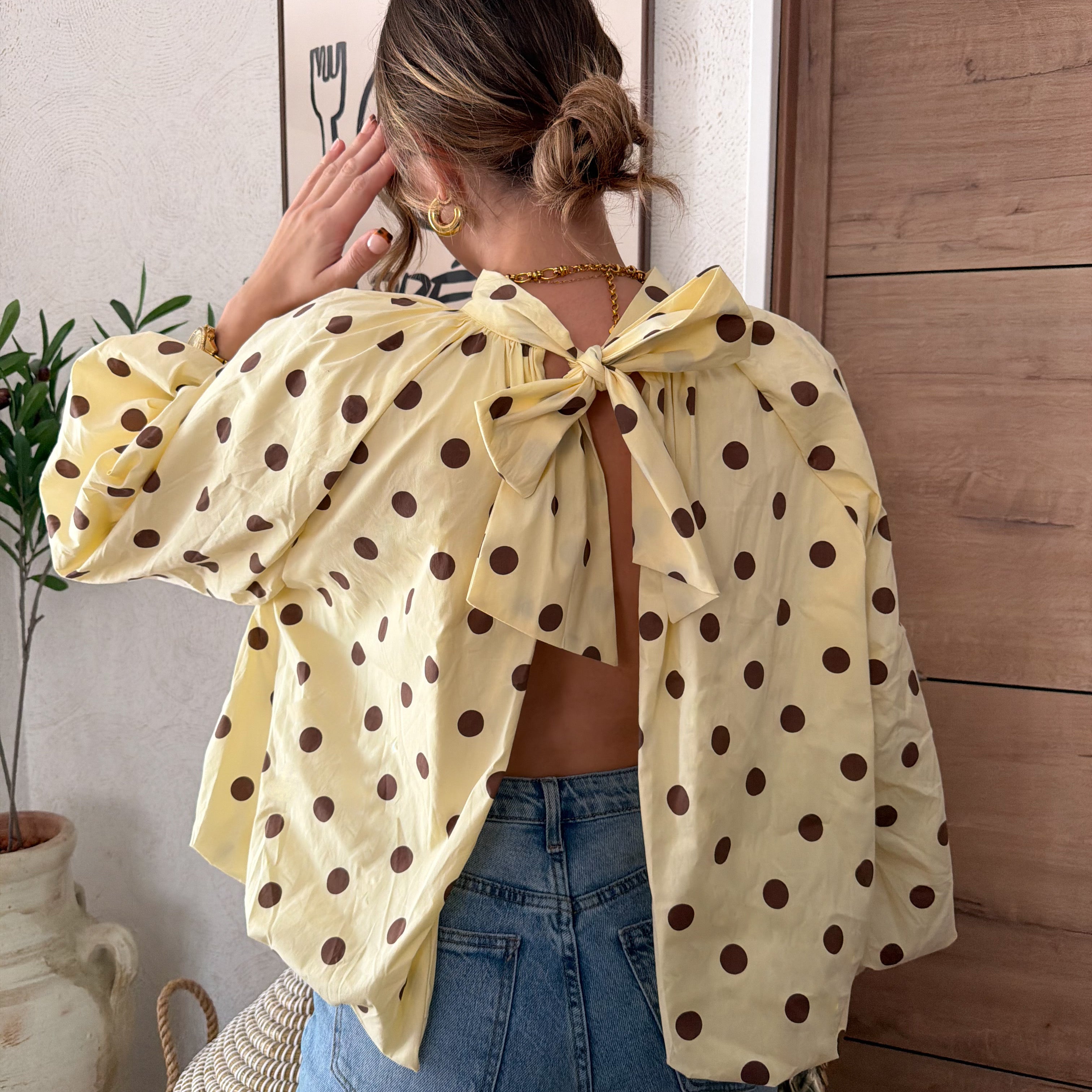 Blouse à pois dos nu jaune