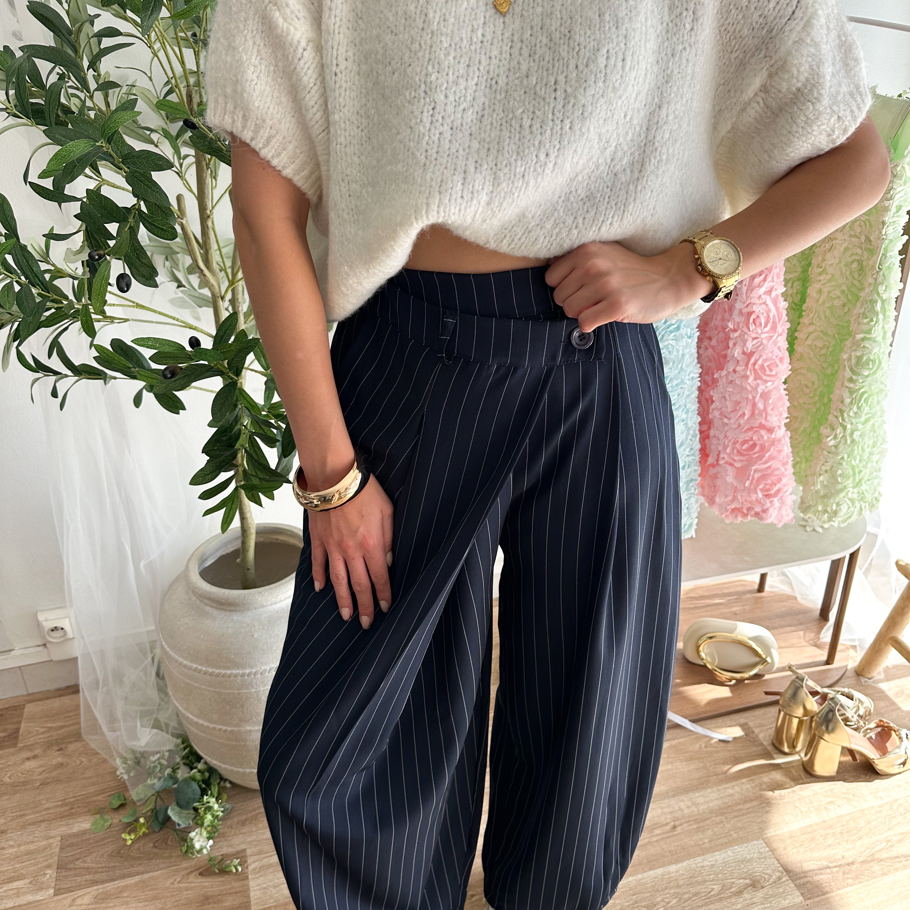 Pantalon ballon rayures bleu marine