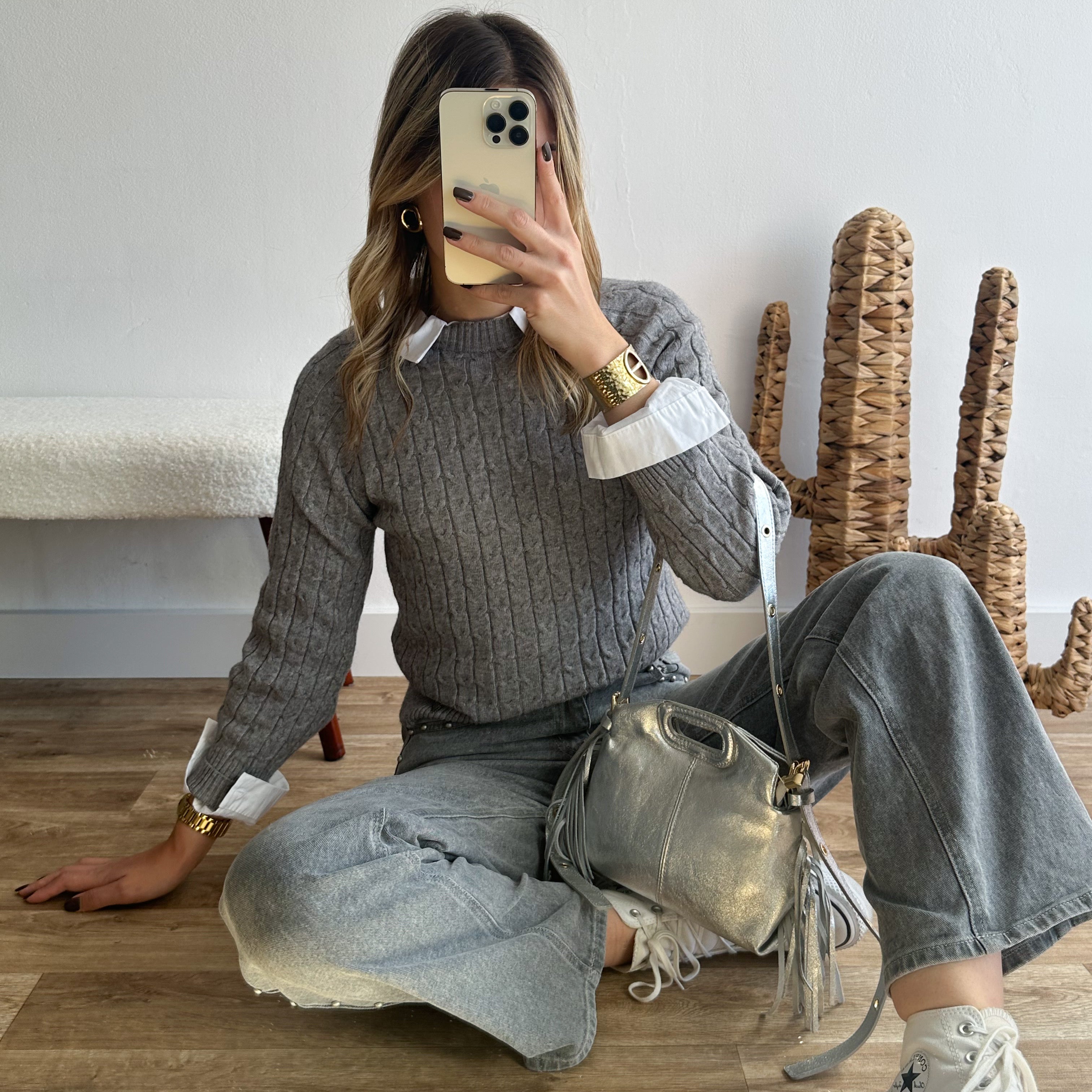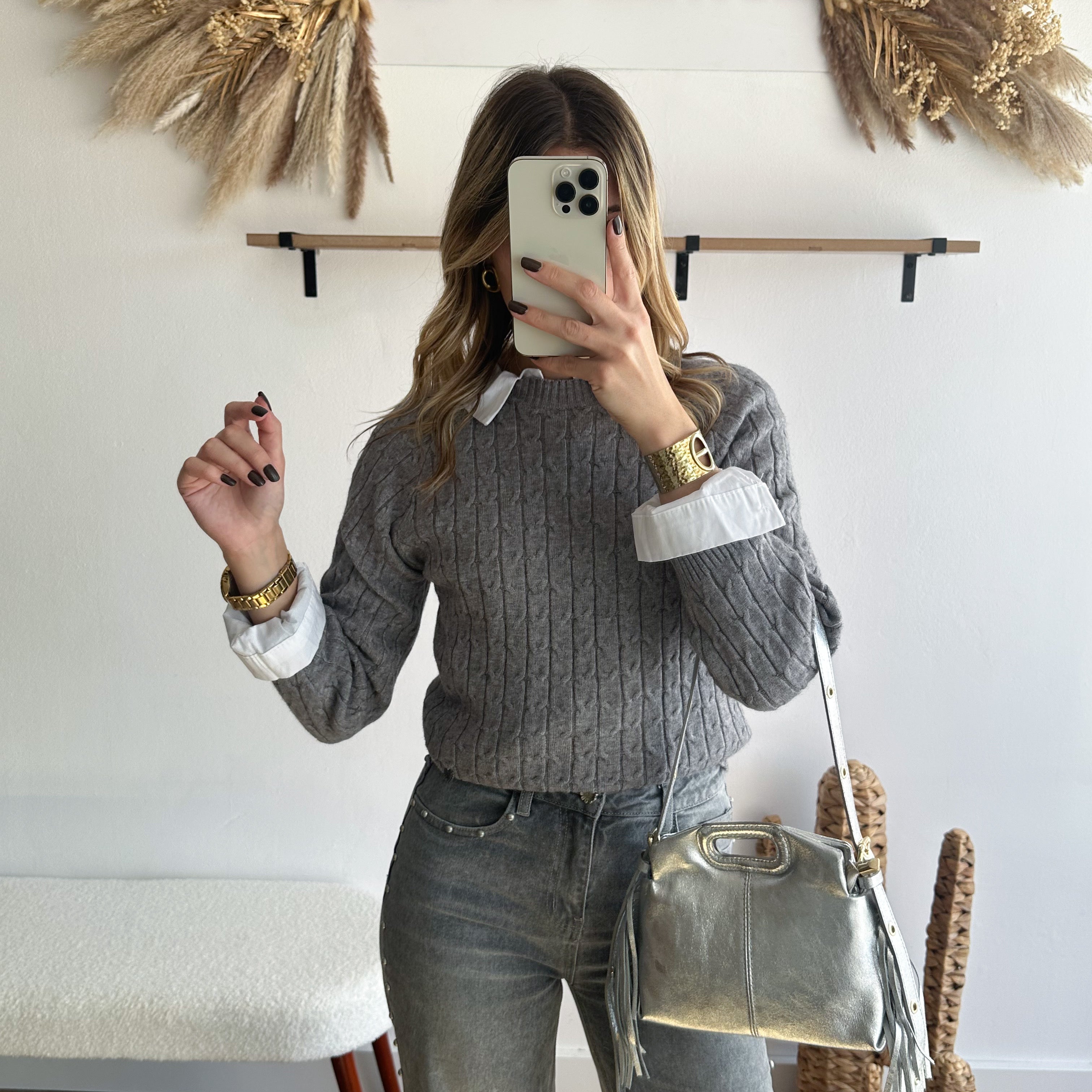 Pull torsadé gris