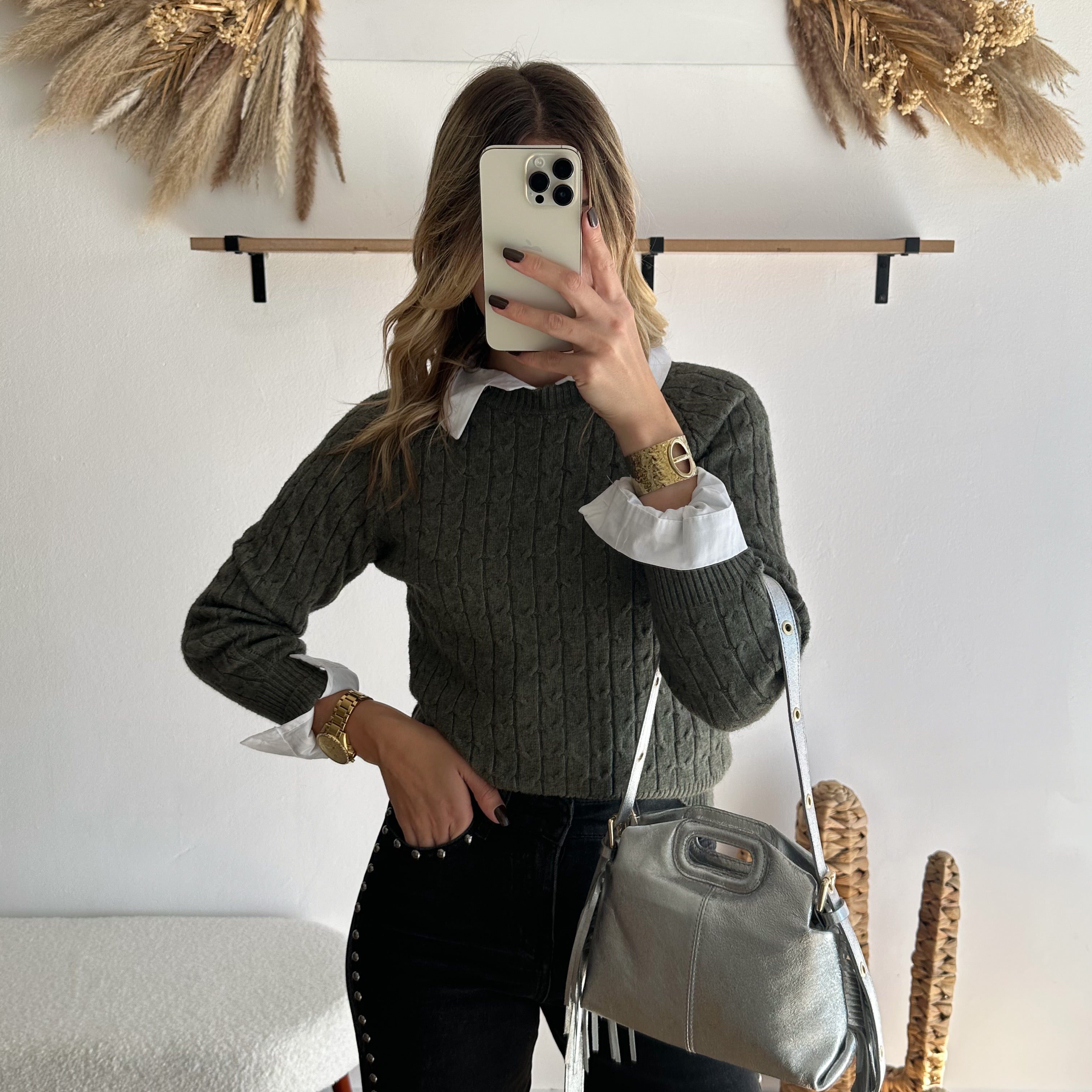 Pull torsadé kaki