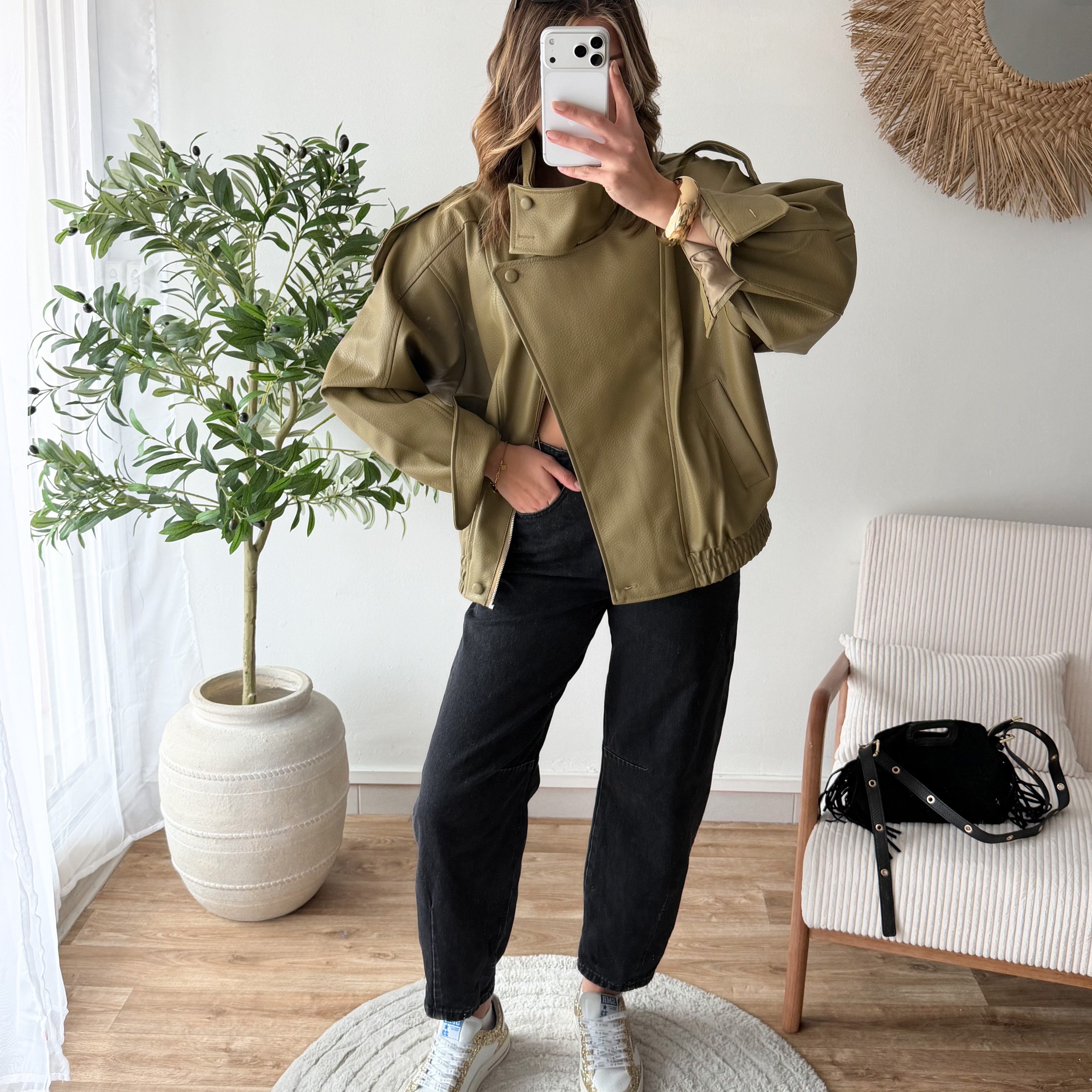 Veste franges kaki