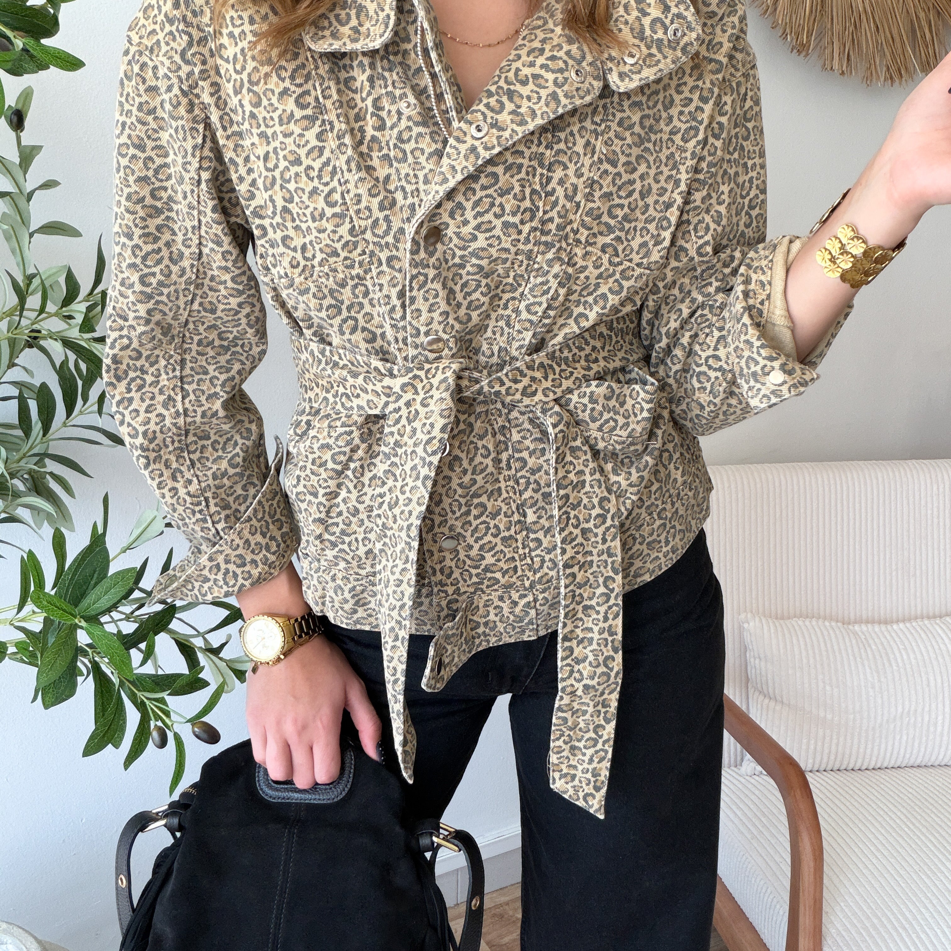 Veste ceintrée léopard