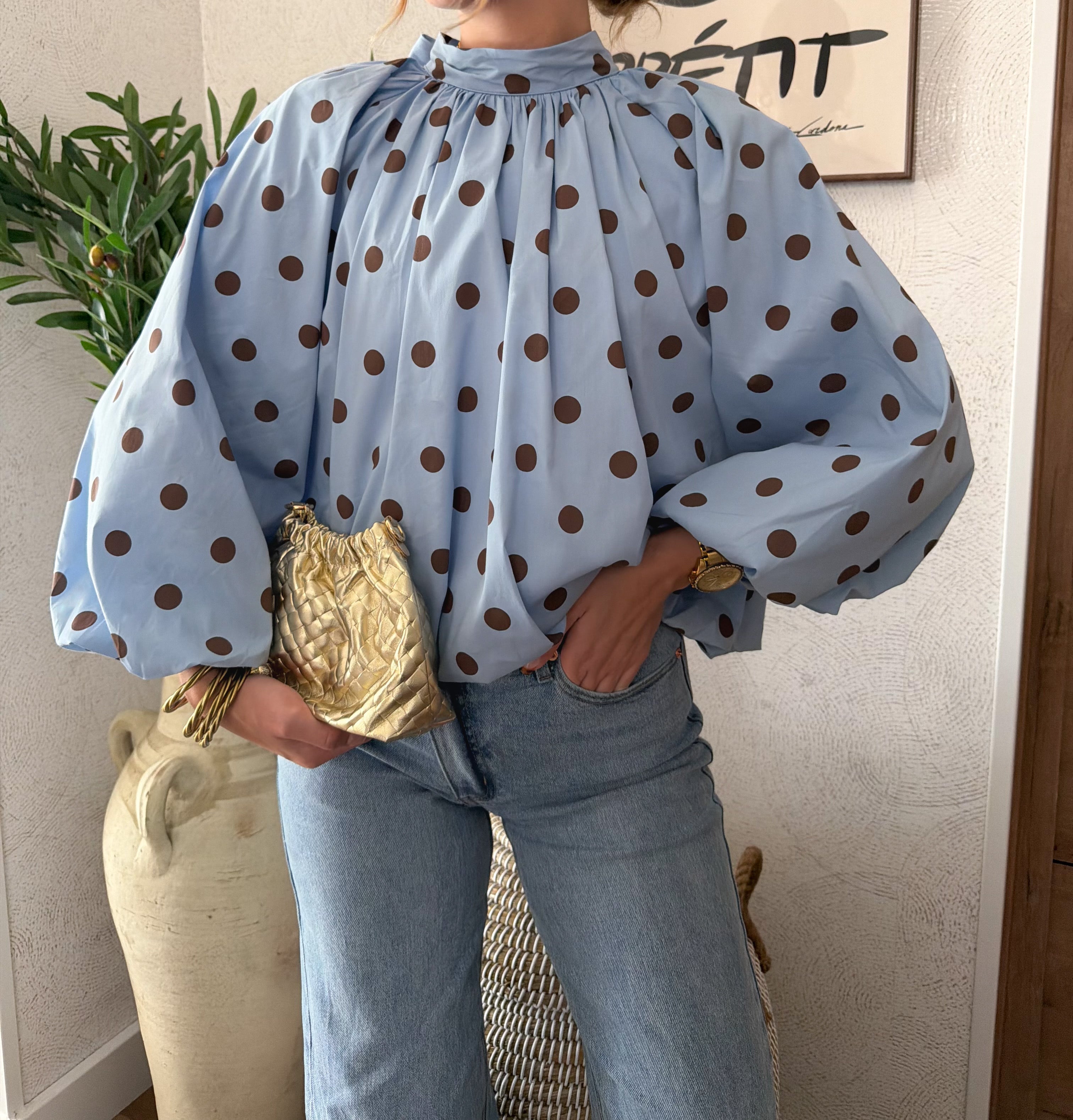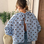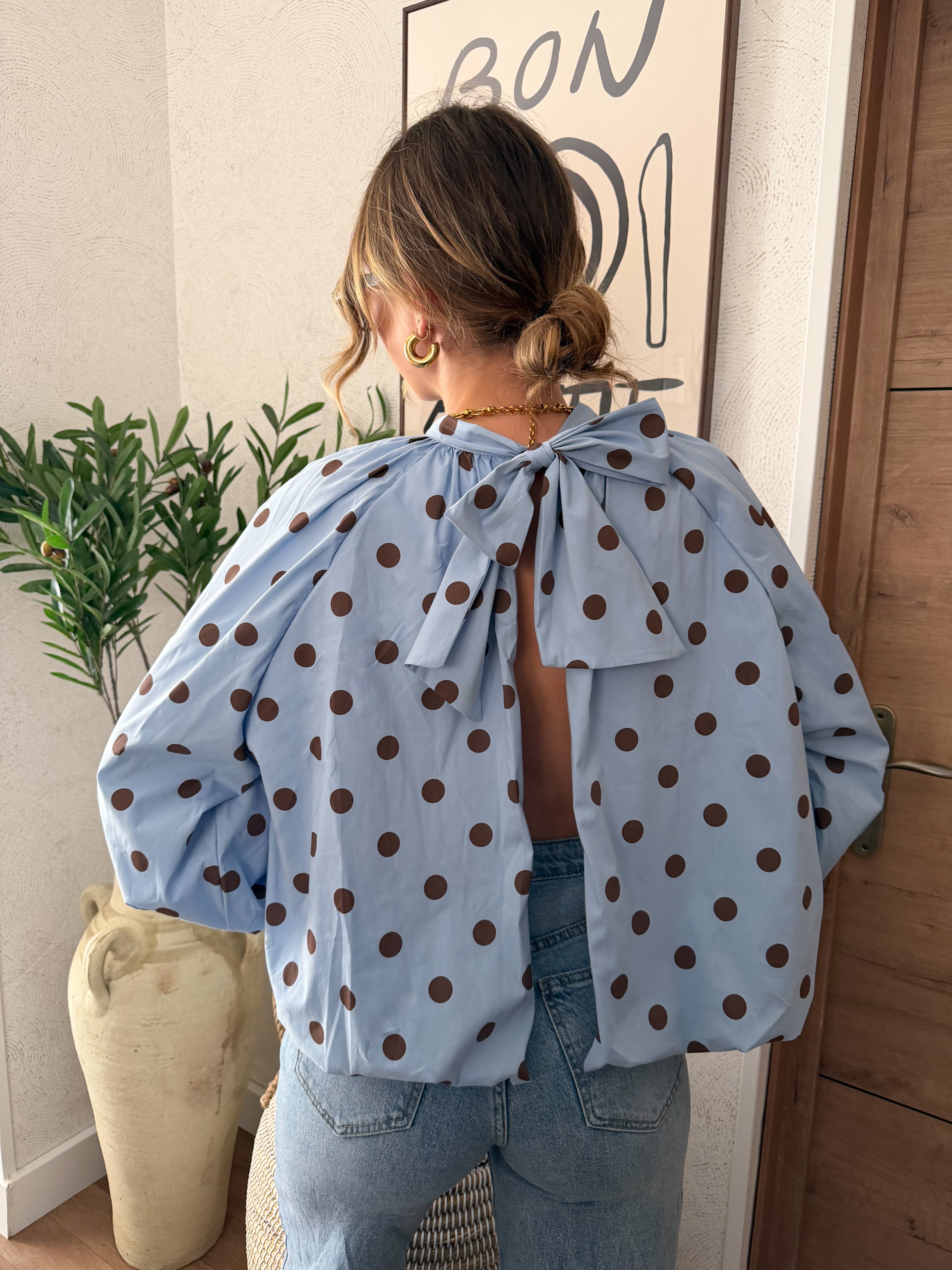 Blouse à pois dos nu bleu
