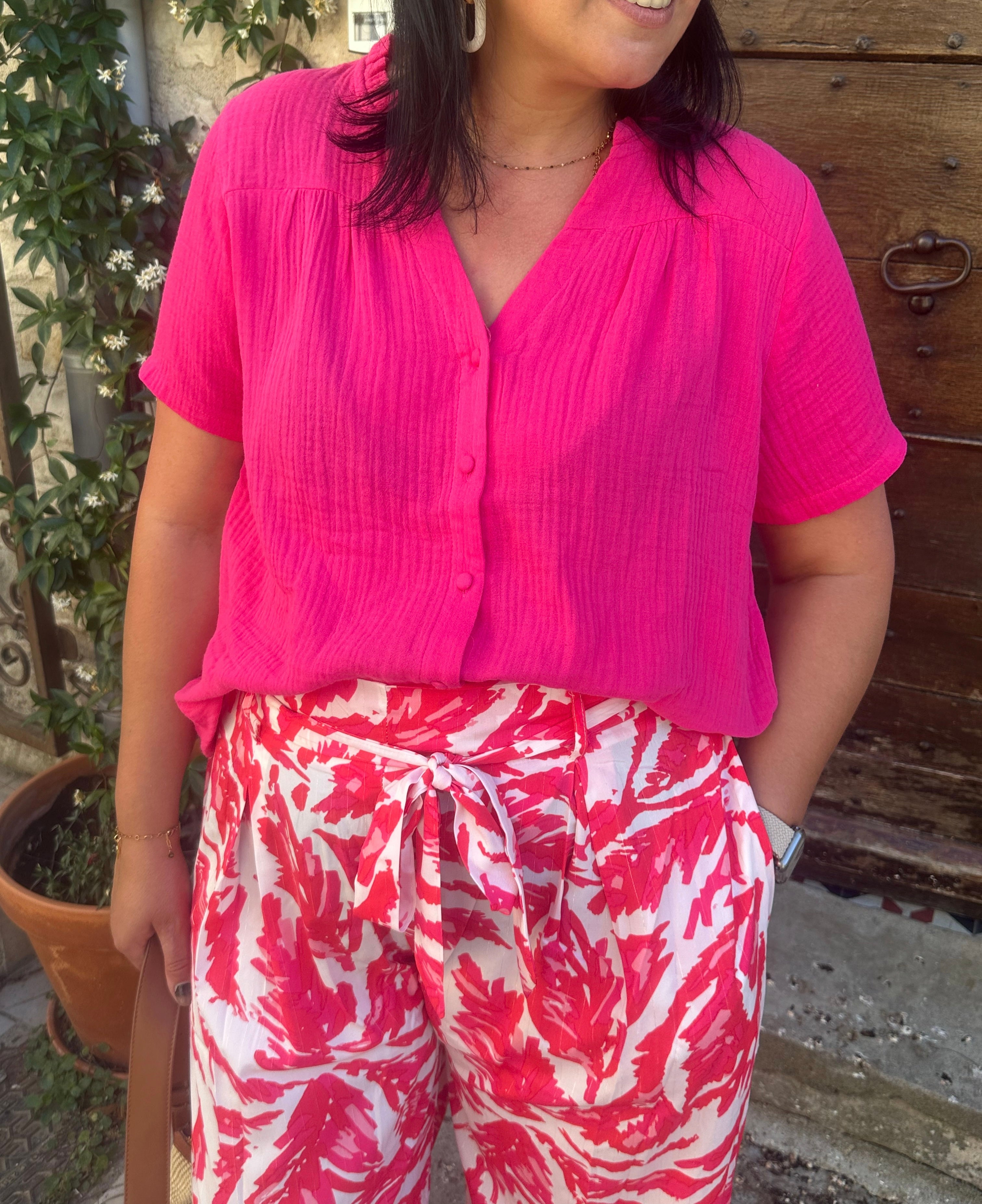 Le mannequin mesure 1m80. Elle porte une taille 44 pour le haut et une taille 48 pour le bas.