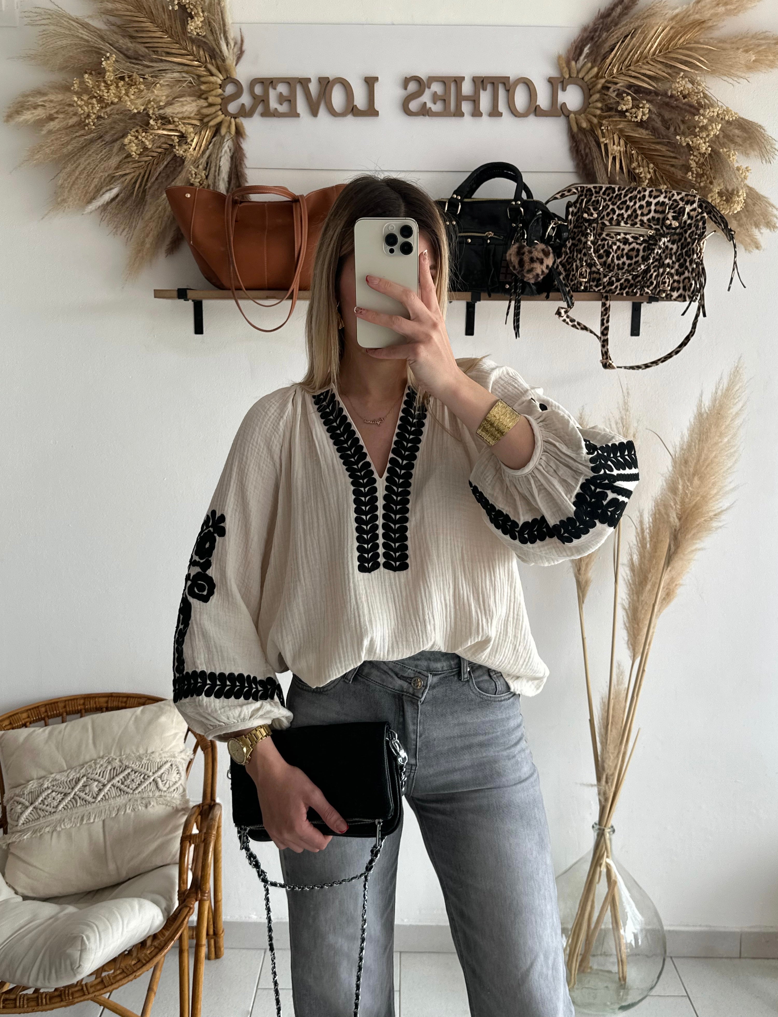 Le mannequin mesure 1m70 et porte une taille S(36).