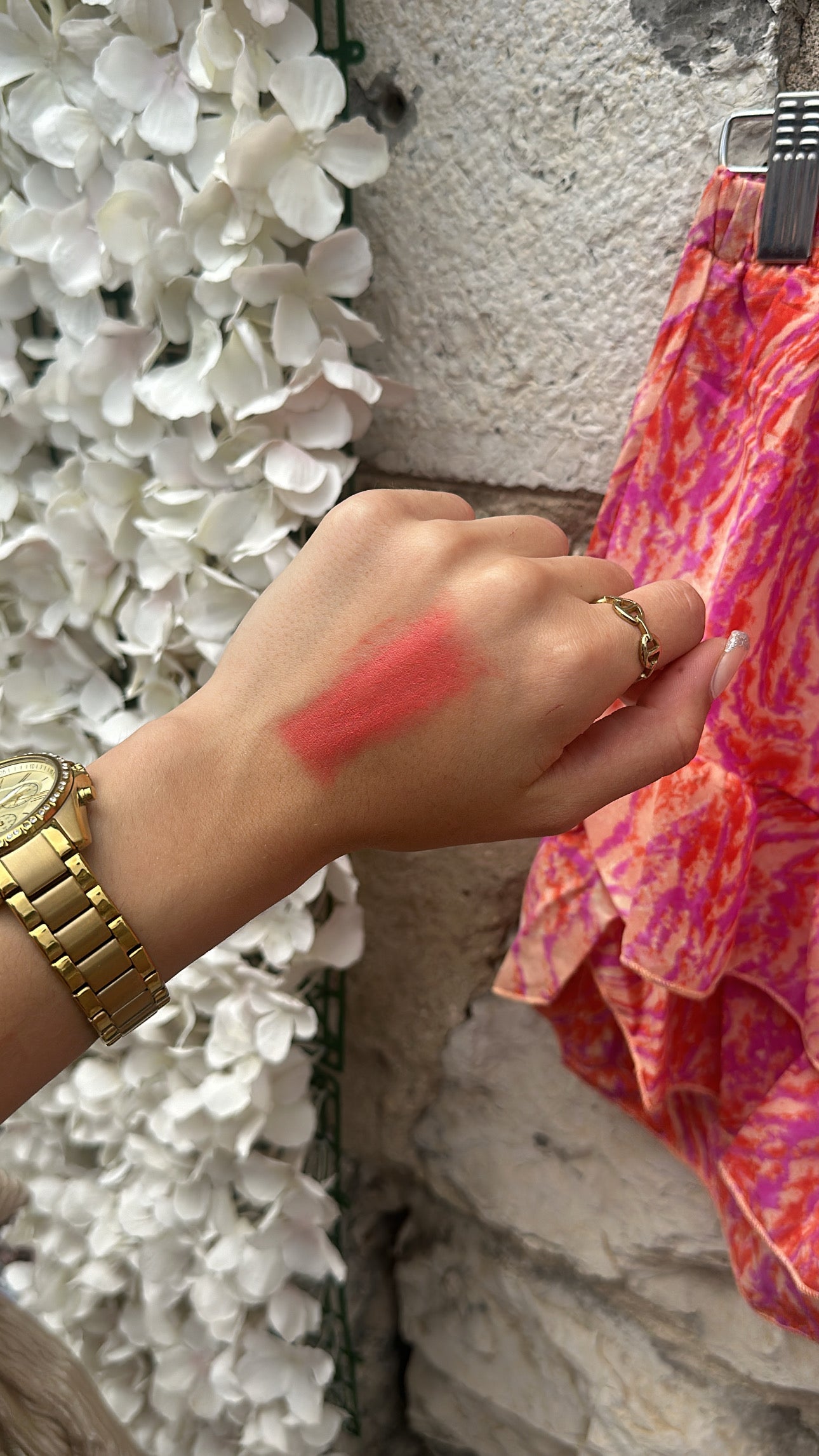Ce produit peut être utilisé sur les joues en tant que blush ou bien sur les lèvres.