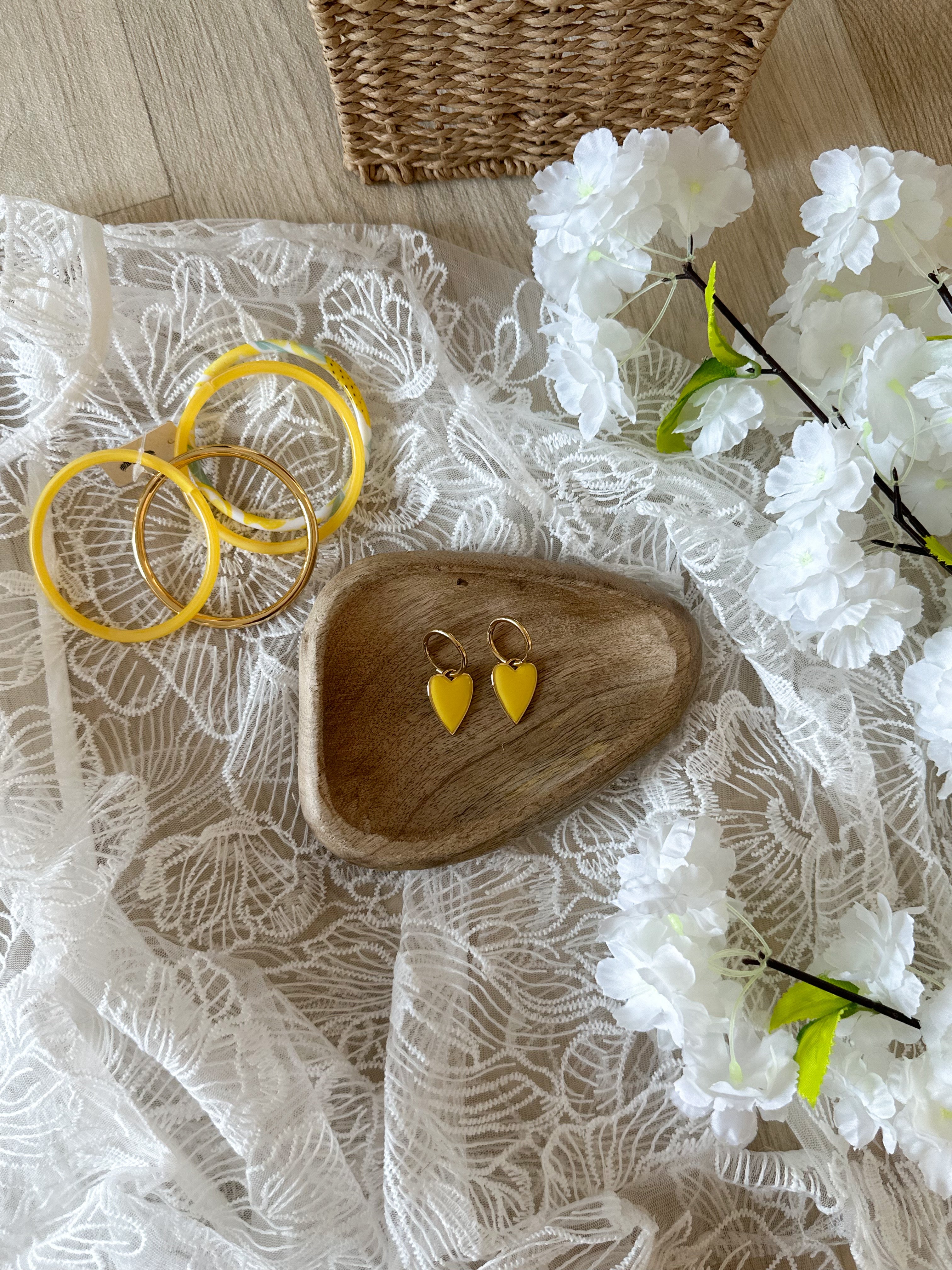 Boucles d’oreilles cœur jaune
