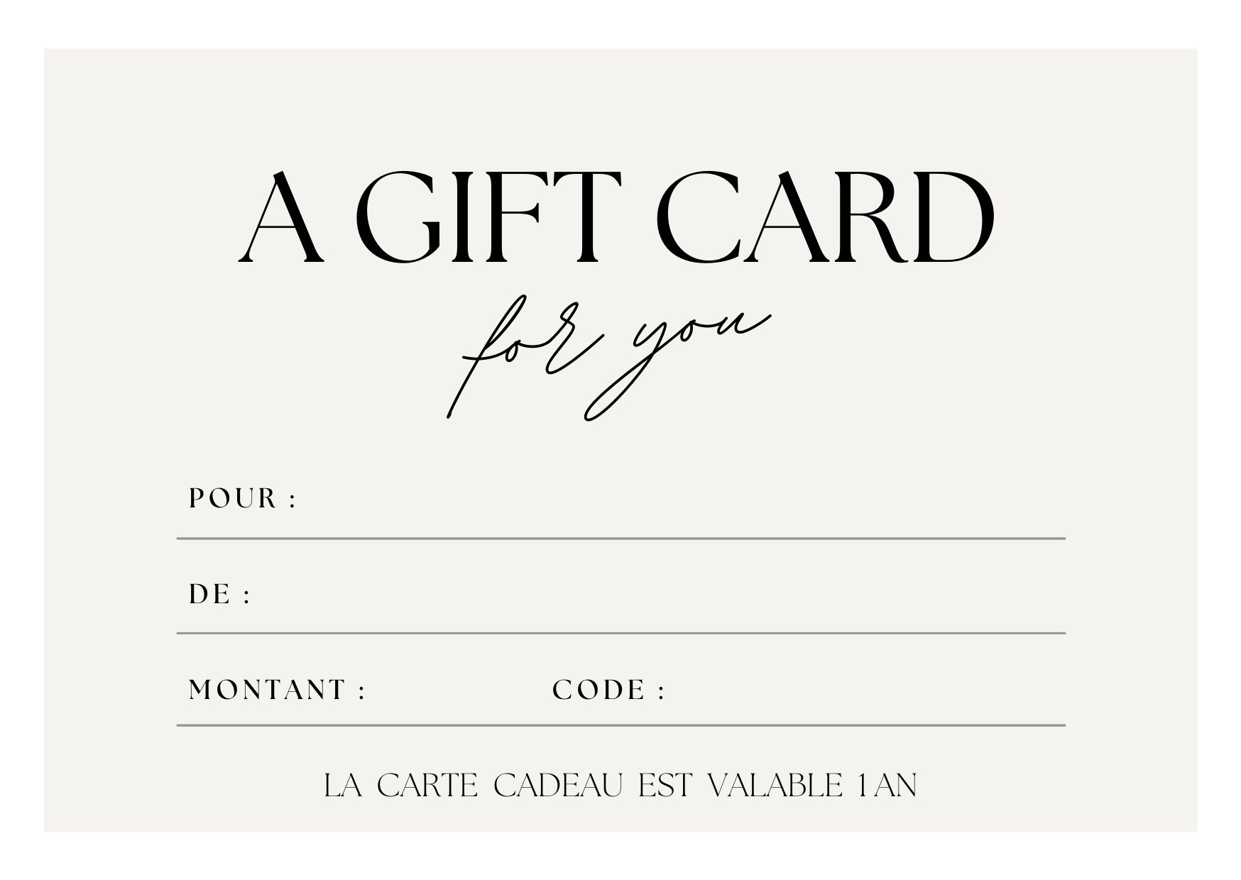 • La carte cadeau est valable 1 an.