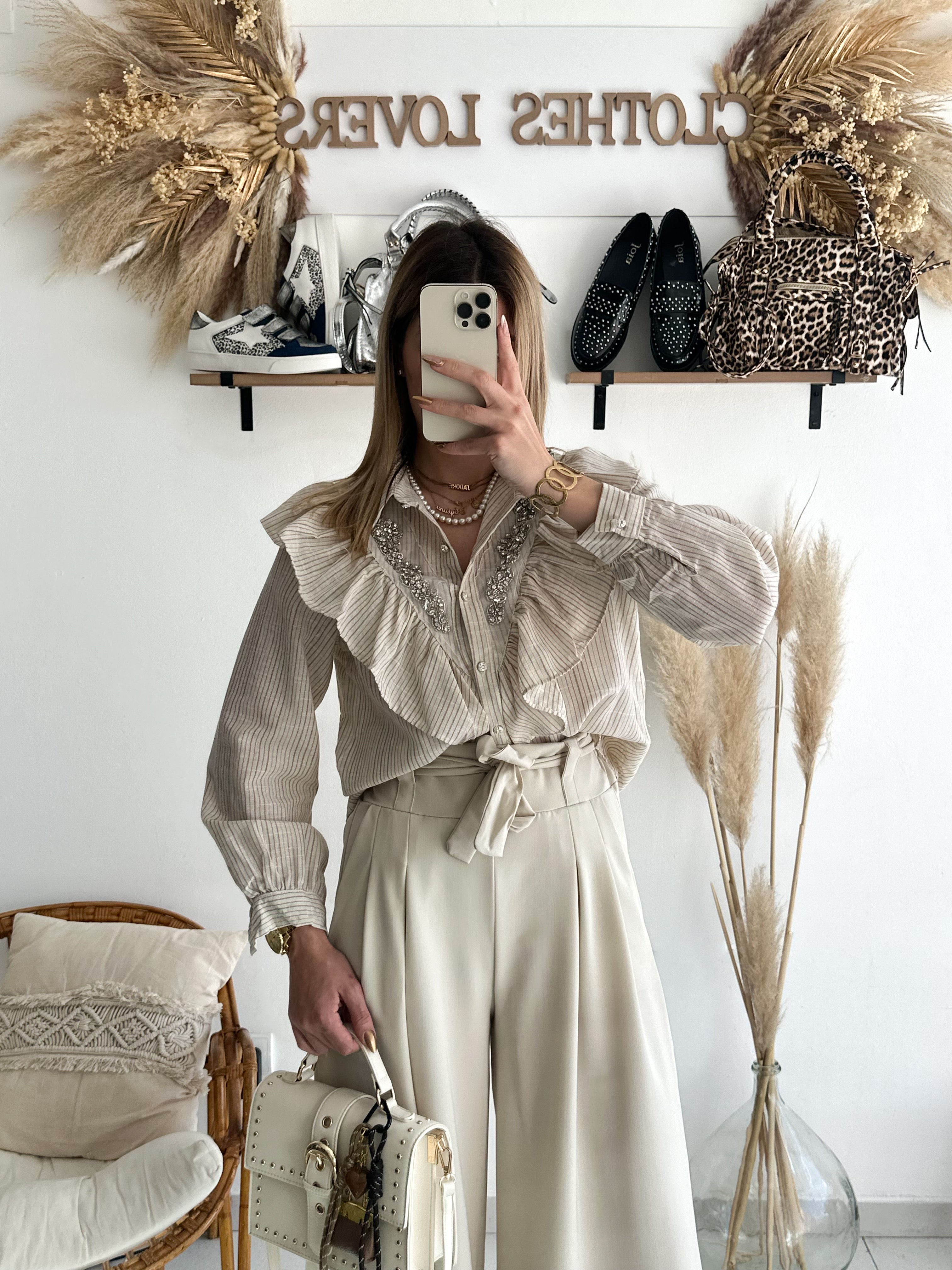 Le mannequin mesure 1m70 et porte une taille S(36).