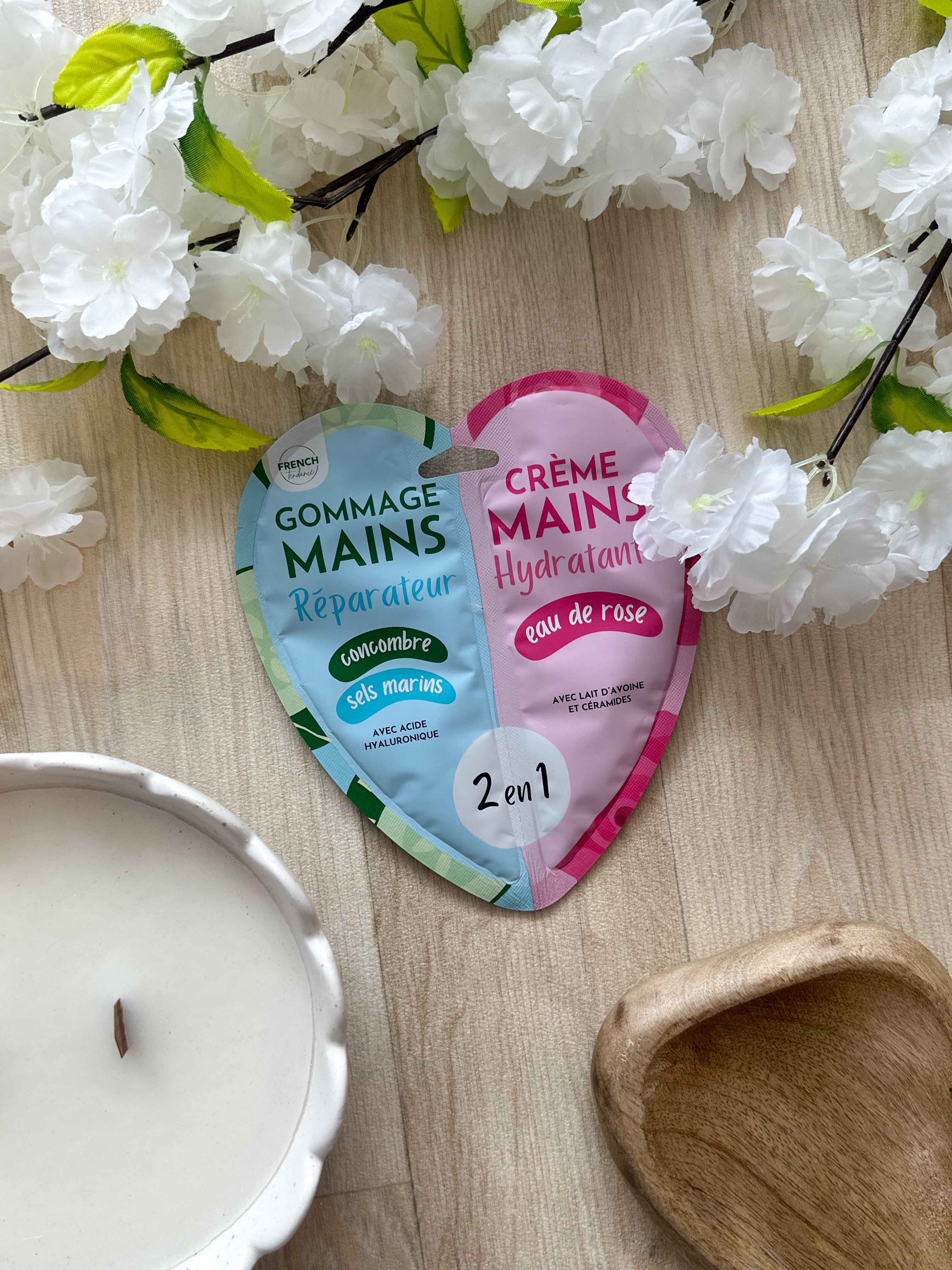 Ce duo combine un gommage exfoliant et une crème hydratante, offrant ainsi une solution efficace pour réparer les mains sèches et rugueuses tout en leur apportant douceur et confort.