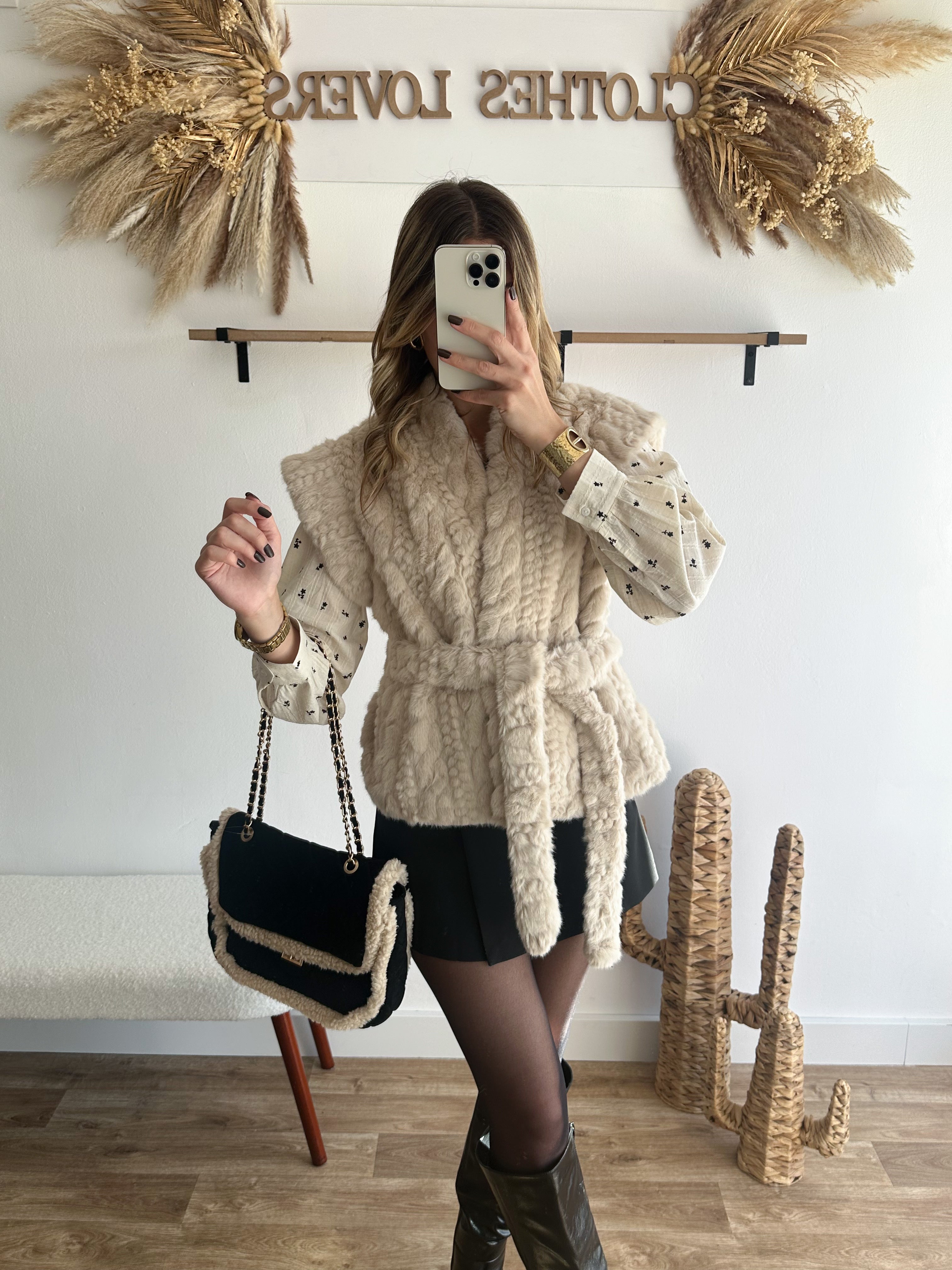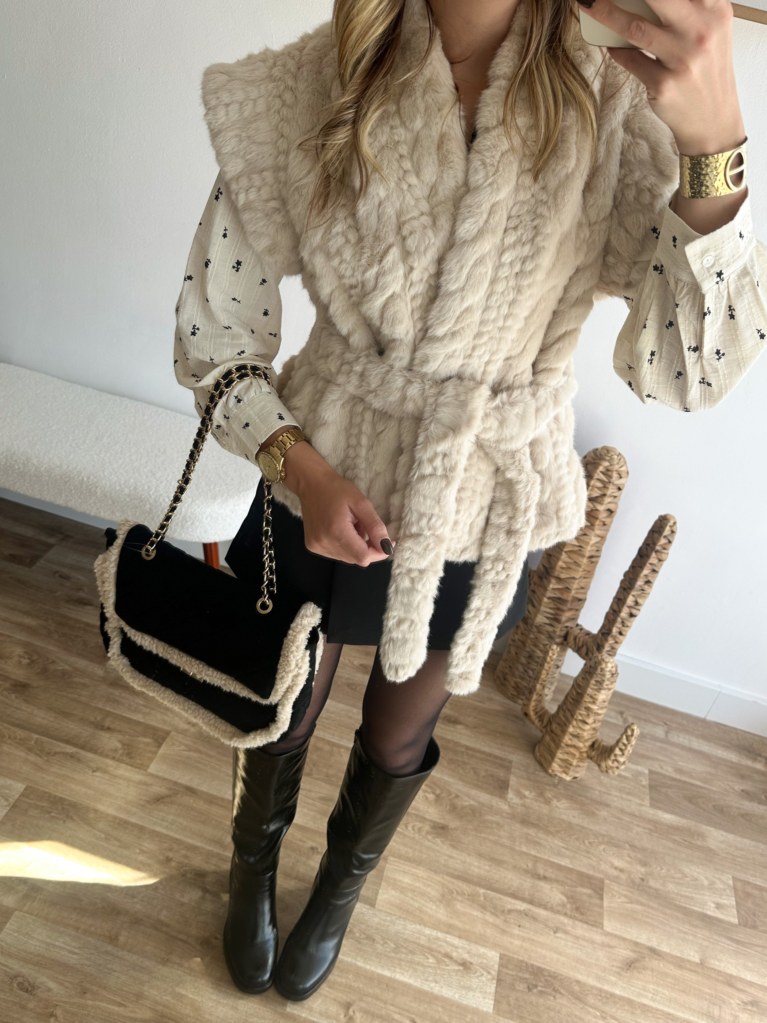 • fourrure sans manches avec ceinture