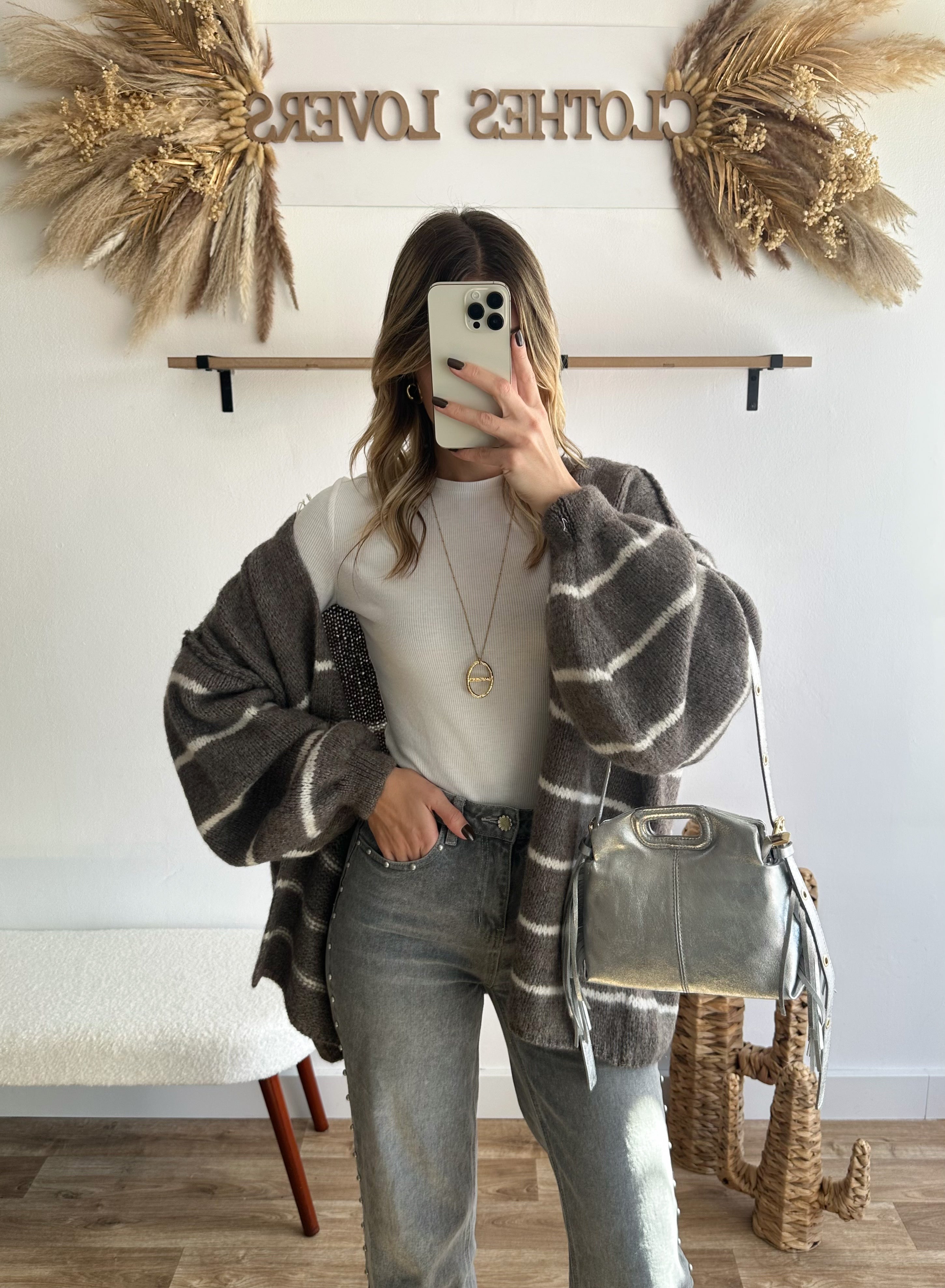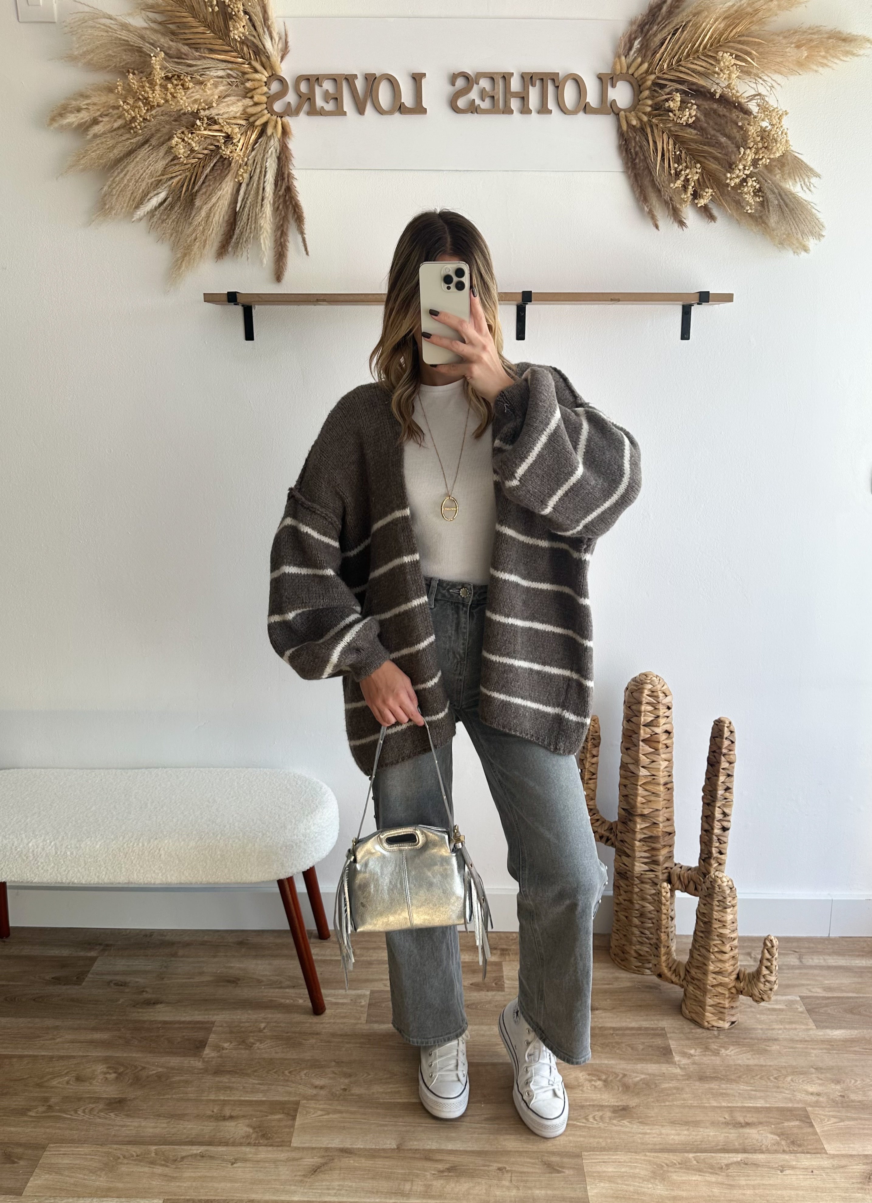 Le mannequin mesure 1m70 et porte une taille S(36).