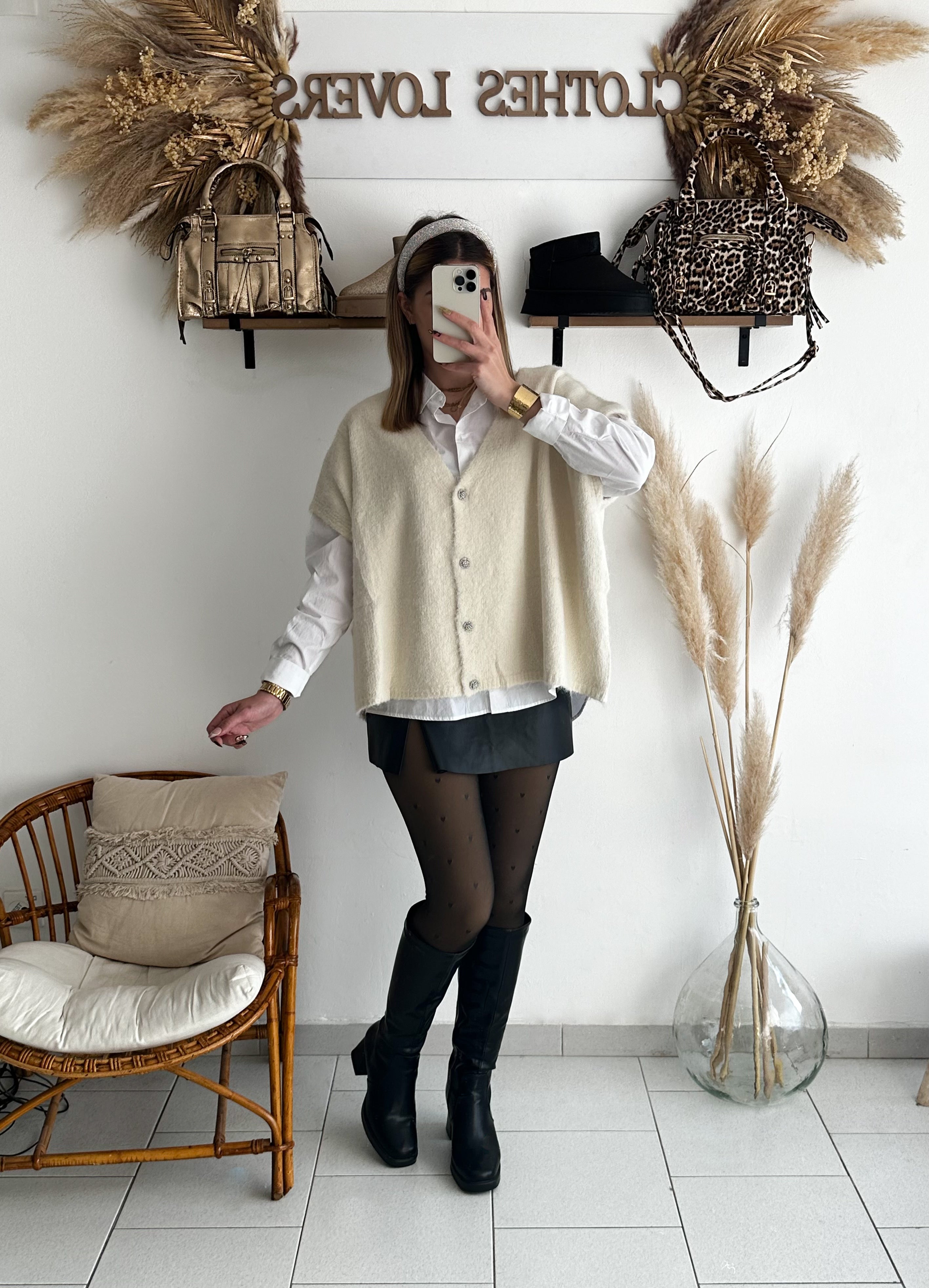 Le mannequin mesure 1m70 et porte une taille S(36).