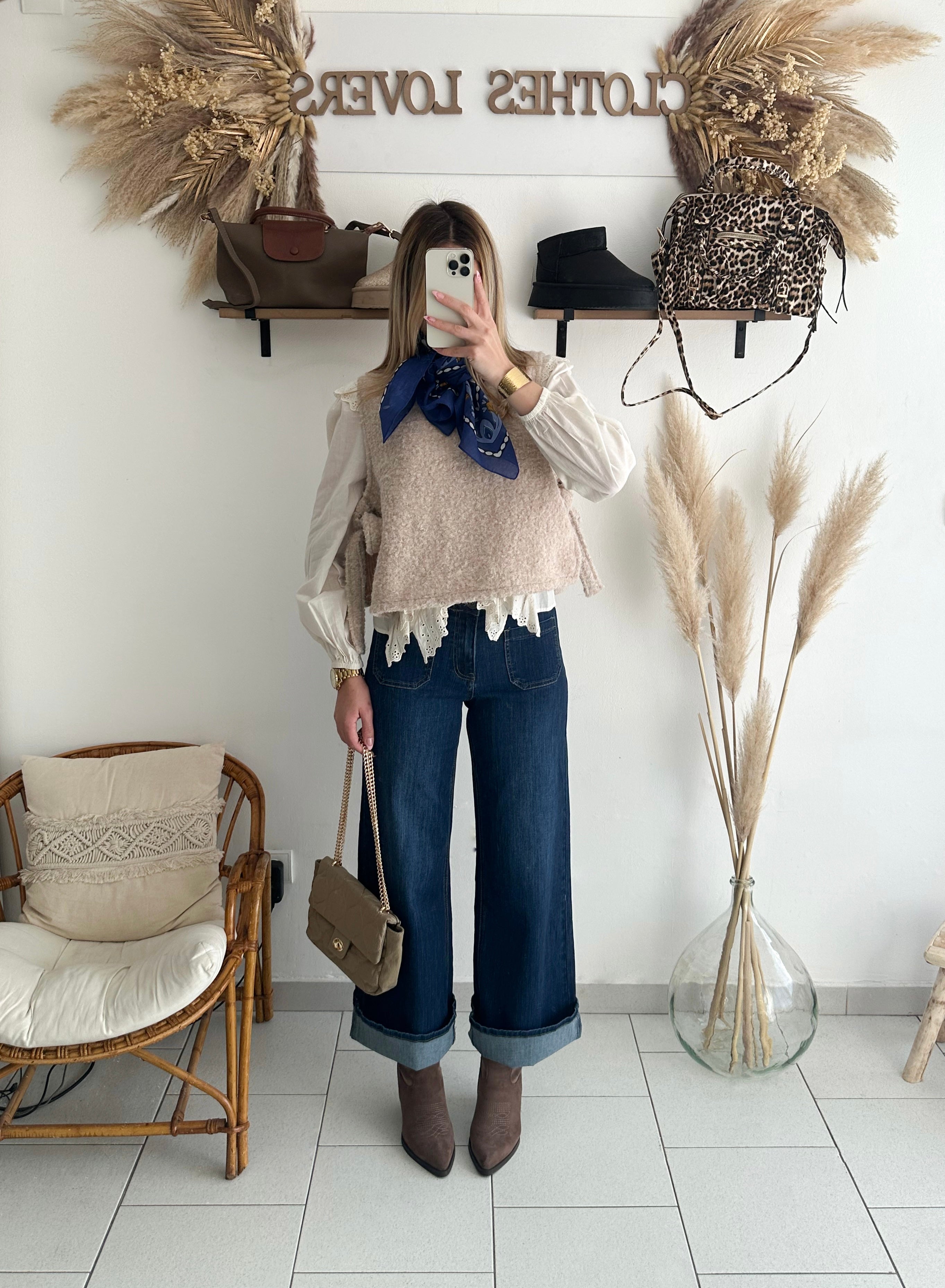 Le mannequin mesure 1m70 et porte une taille S(36).