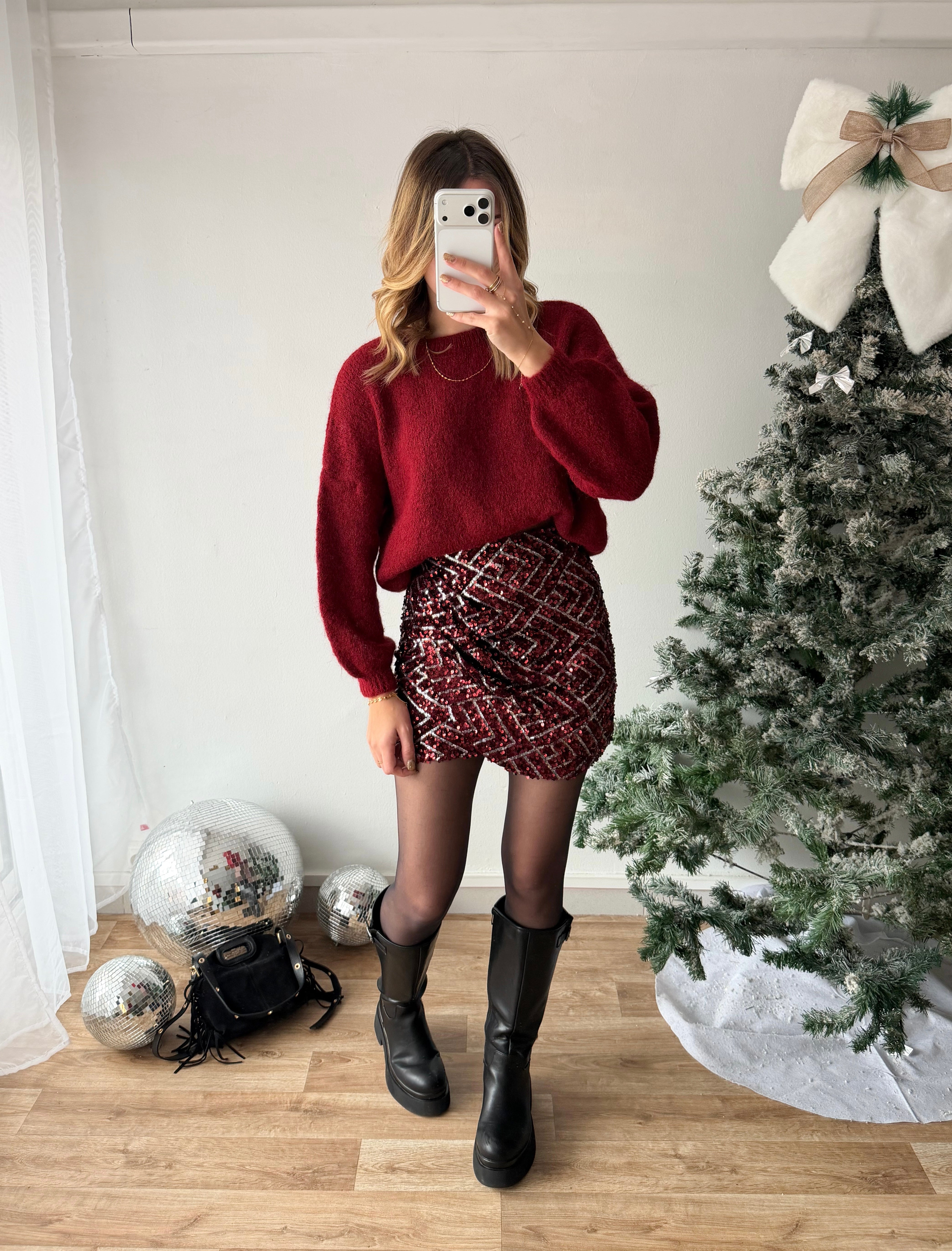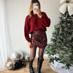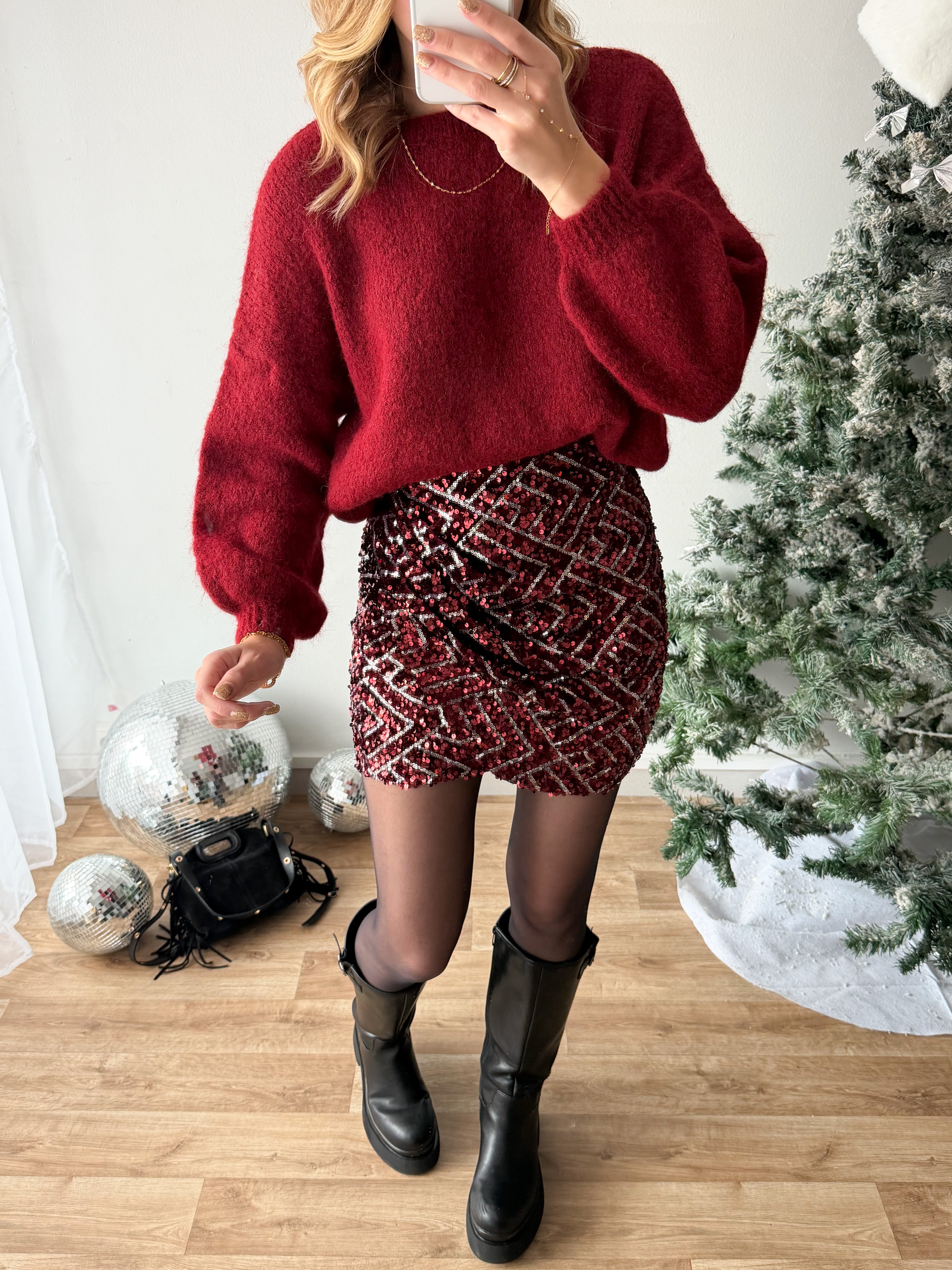 • jupe à sequins bordeaux