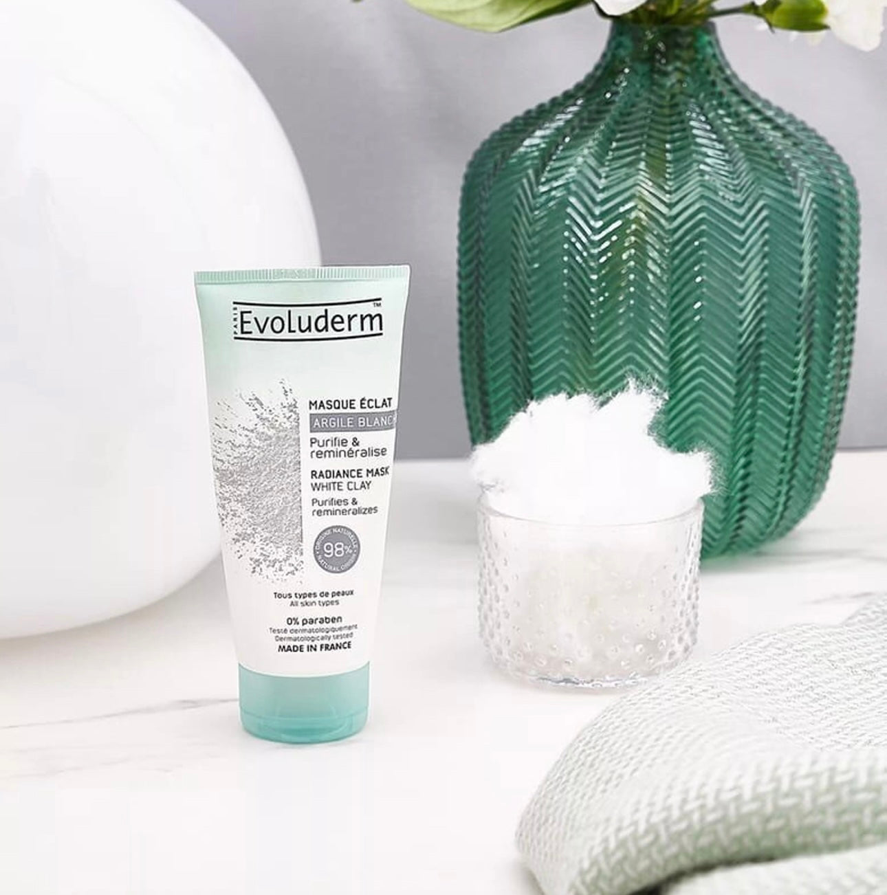 Idéal pour les peaux ternes et fatiguées, ce masque à la formule concentrée en Argile Blanche booste l’éclat de la peau. Composé à 98% d’ingrédients d’origine naturelle, ce masque tonifie la peau et offre un teint uniforme. L'Argile Blanche qu'il contient possède des propriétés cicatrisantes et anti-inflammatoires permettant de purifier et reminéraliser l'épiderme.