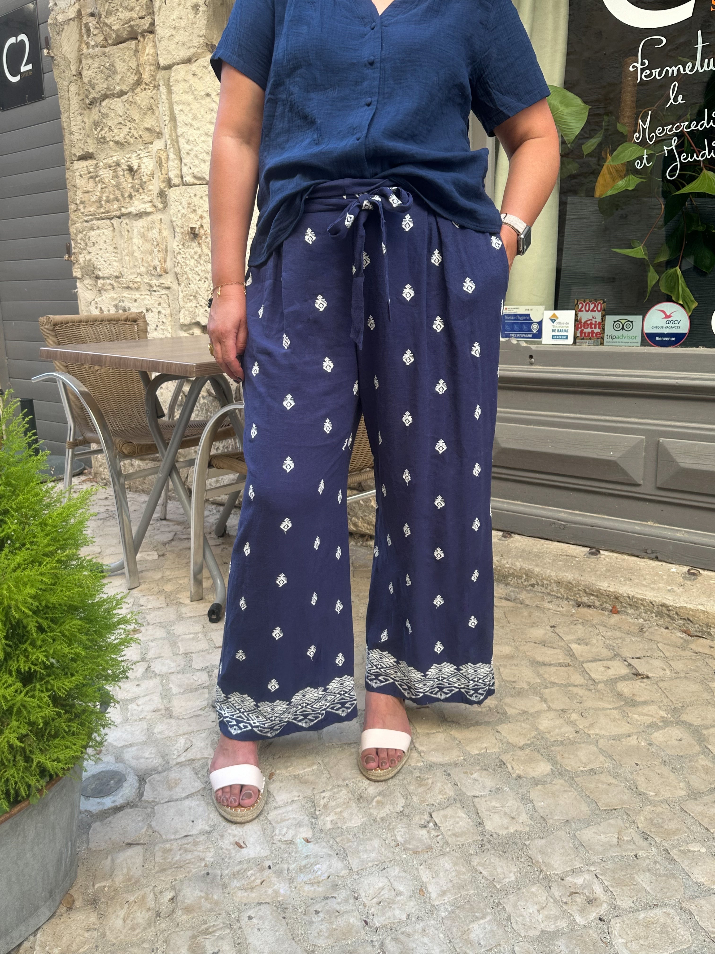 Le mannequin mesure 1m80. Elle porte une taille 44 pour le haut et une taille 48 pour le bas.