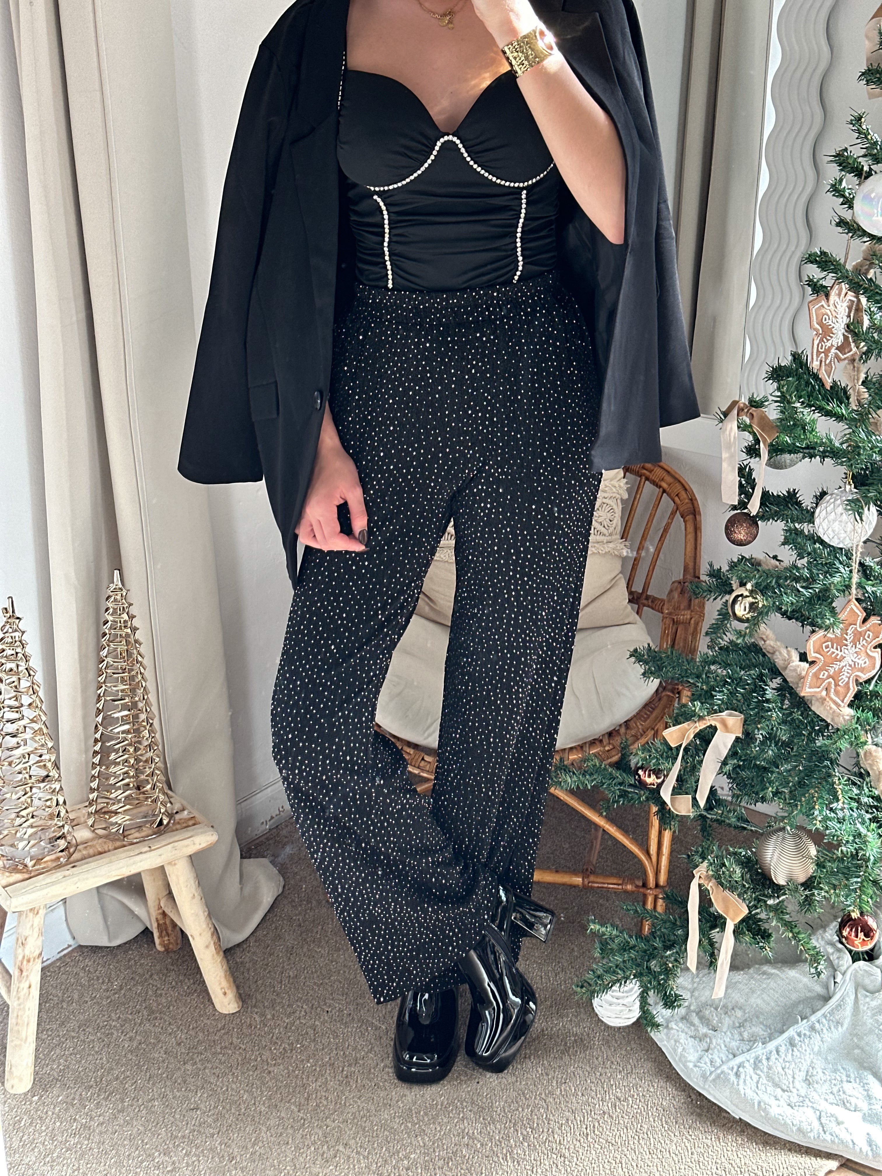 • pantalon ample à strass