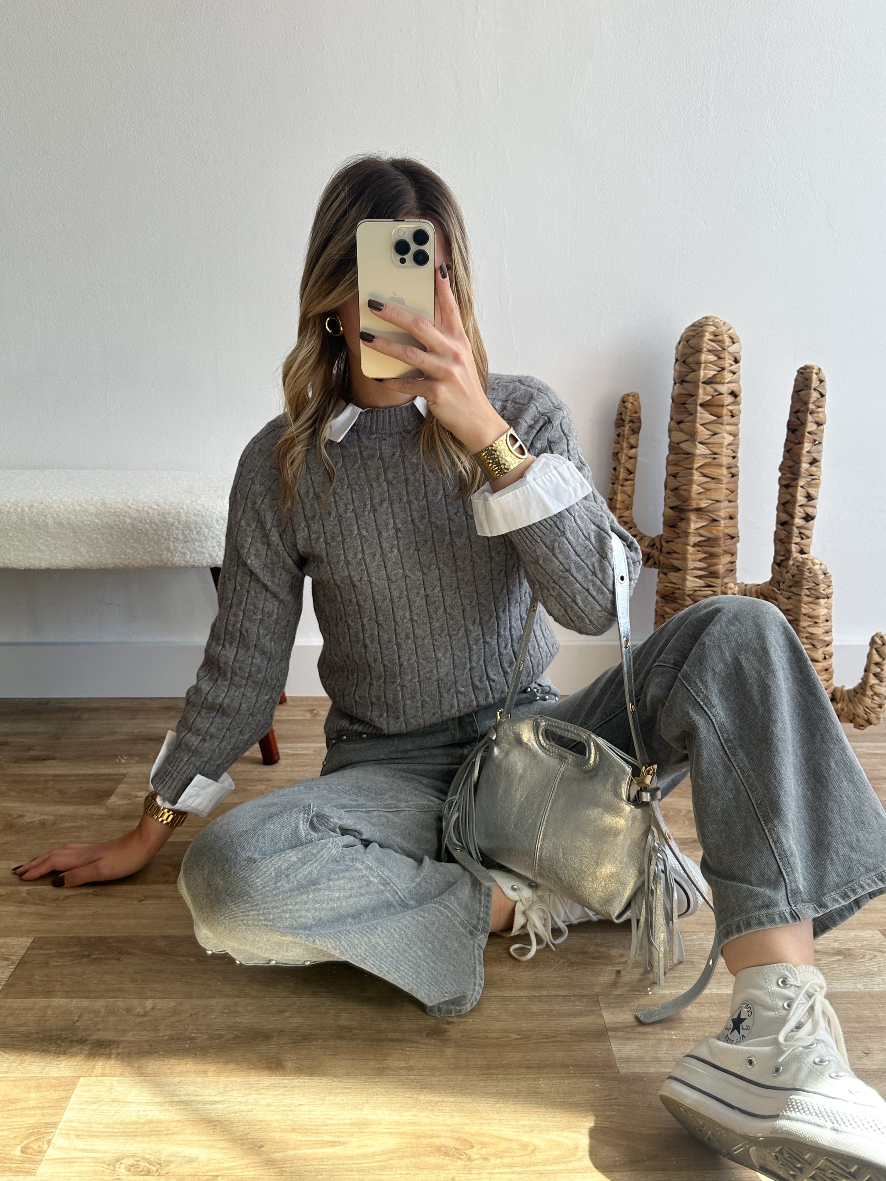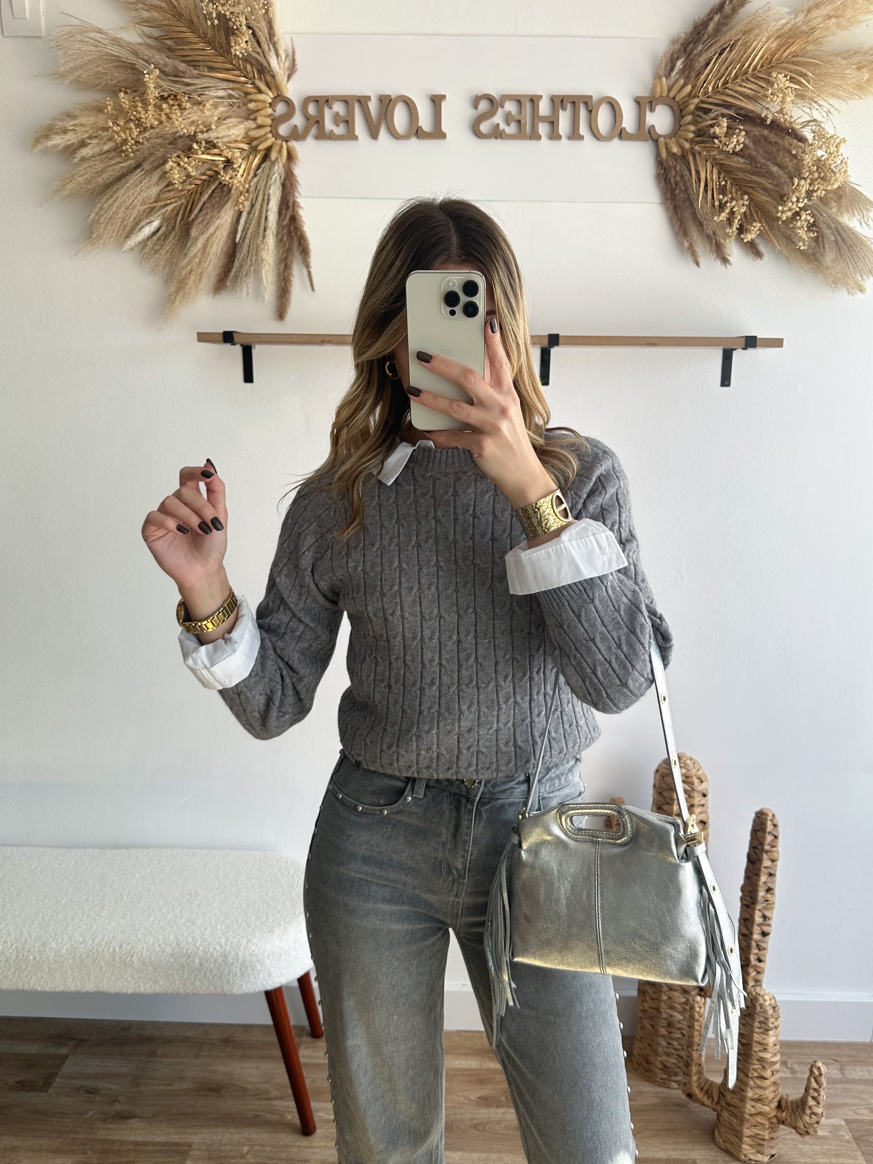 Pull torsadé gris