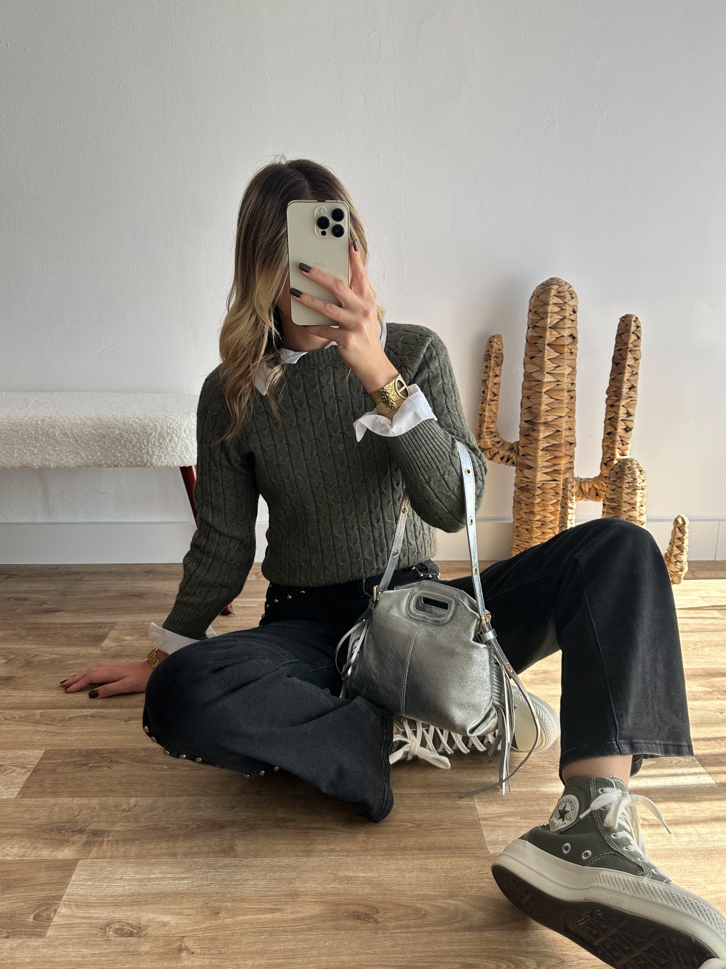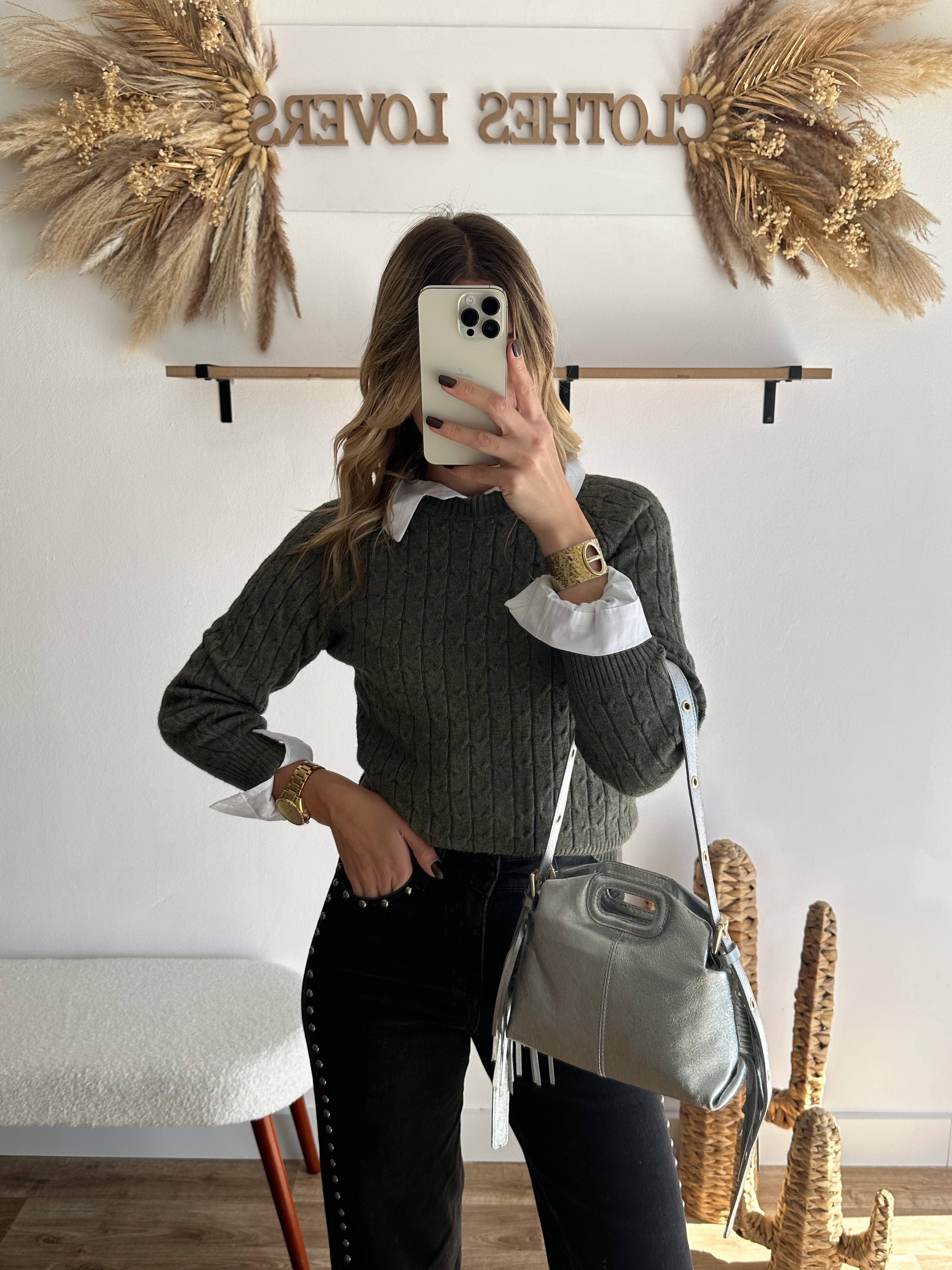 Pull torsadé kaki
