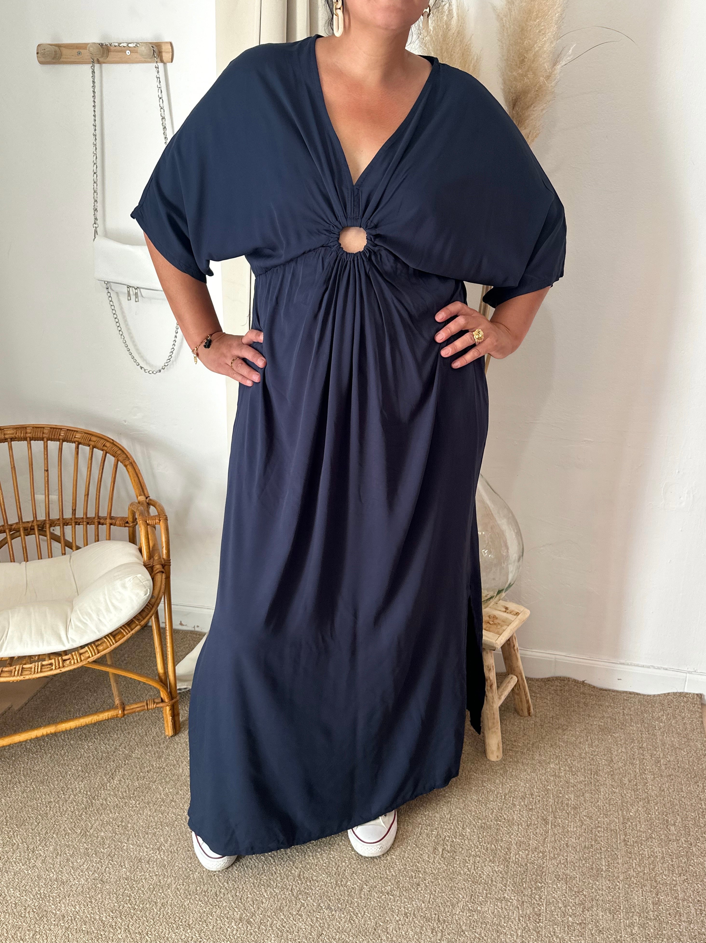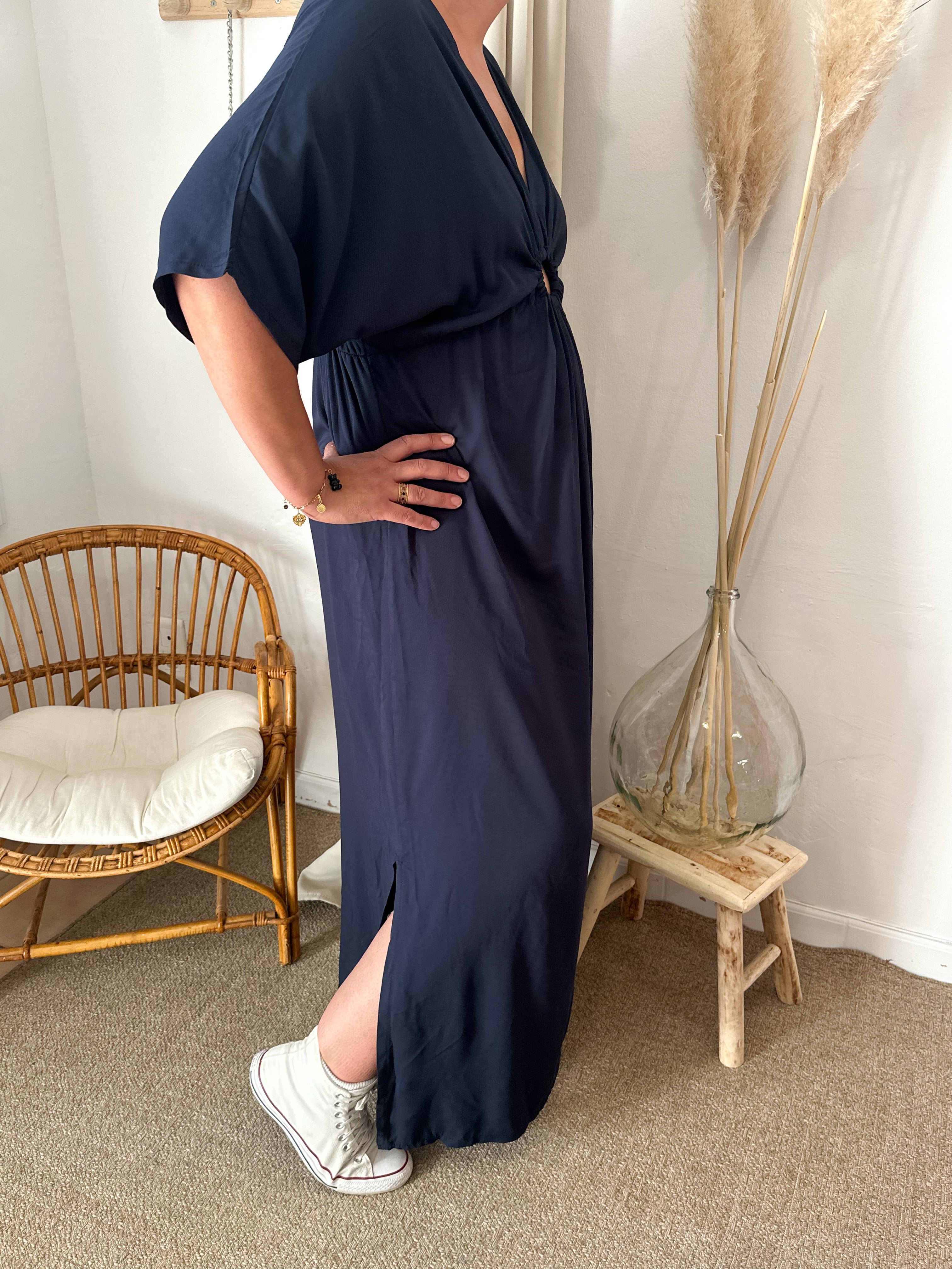 • robe longue avec ouverture sur l’avant