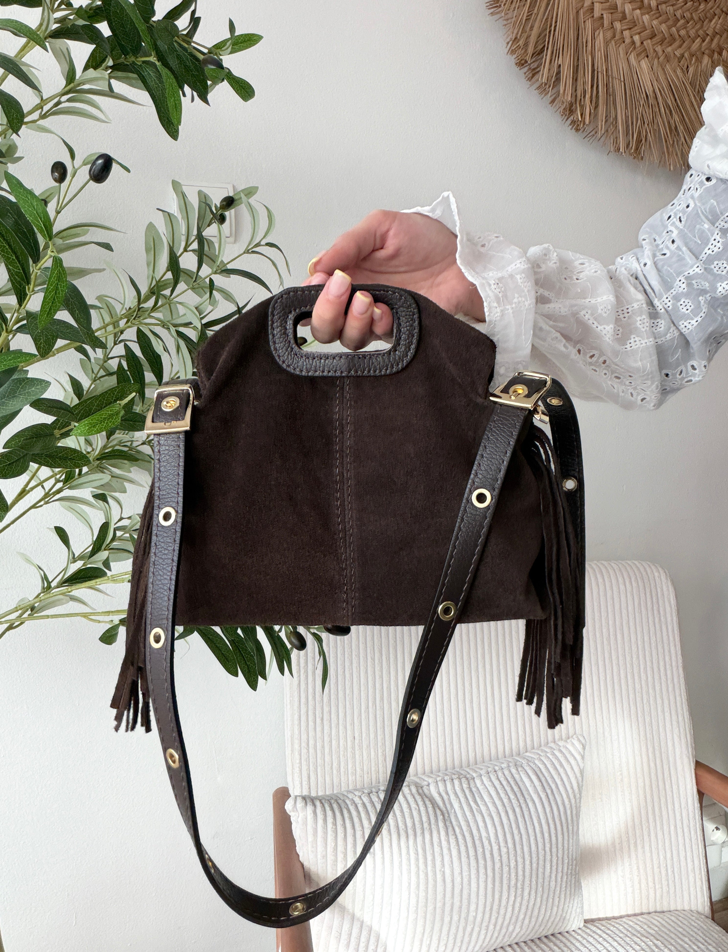 Sac en cuir suède à franges