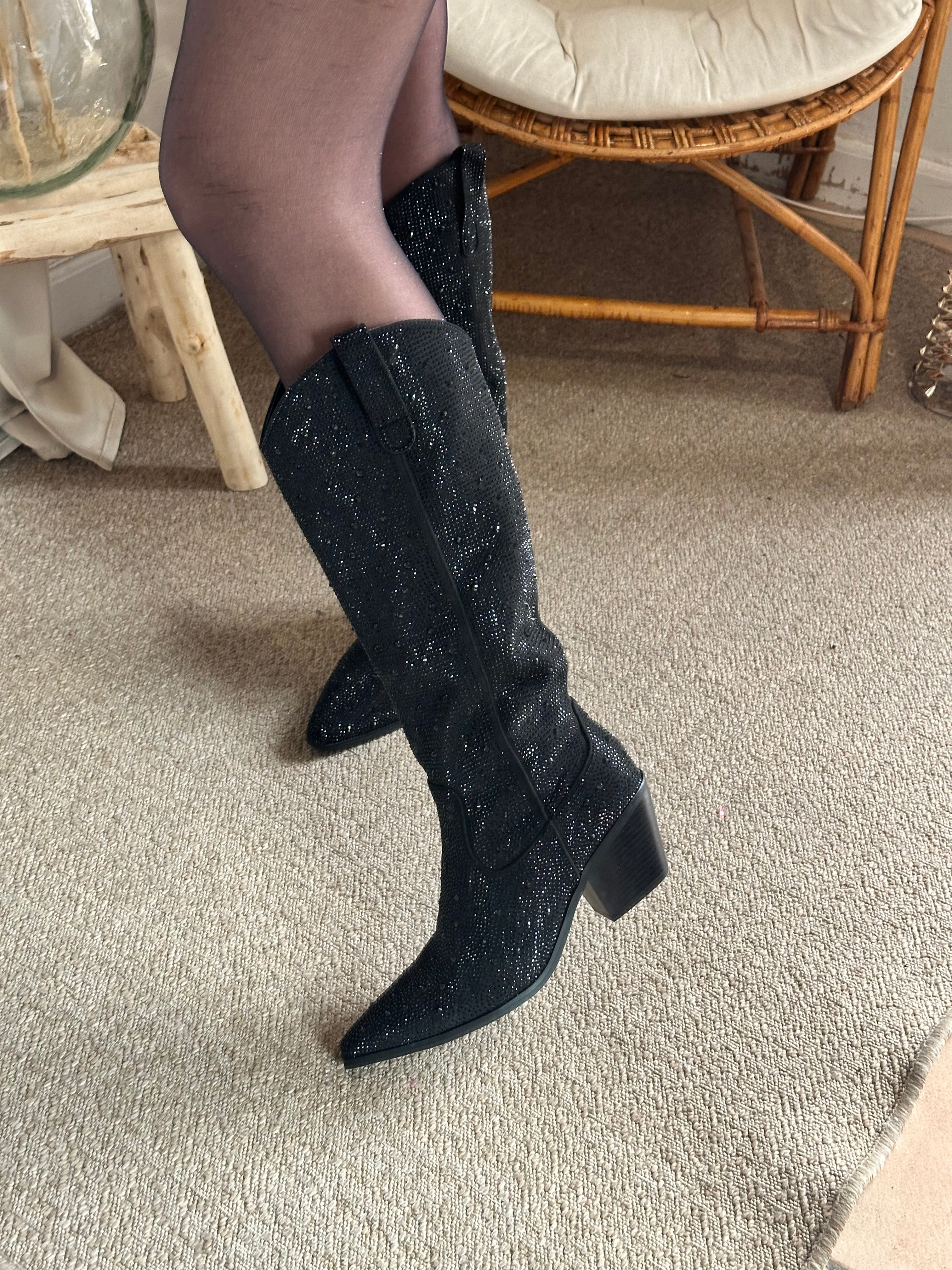 Santiags à strass noir