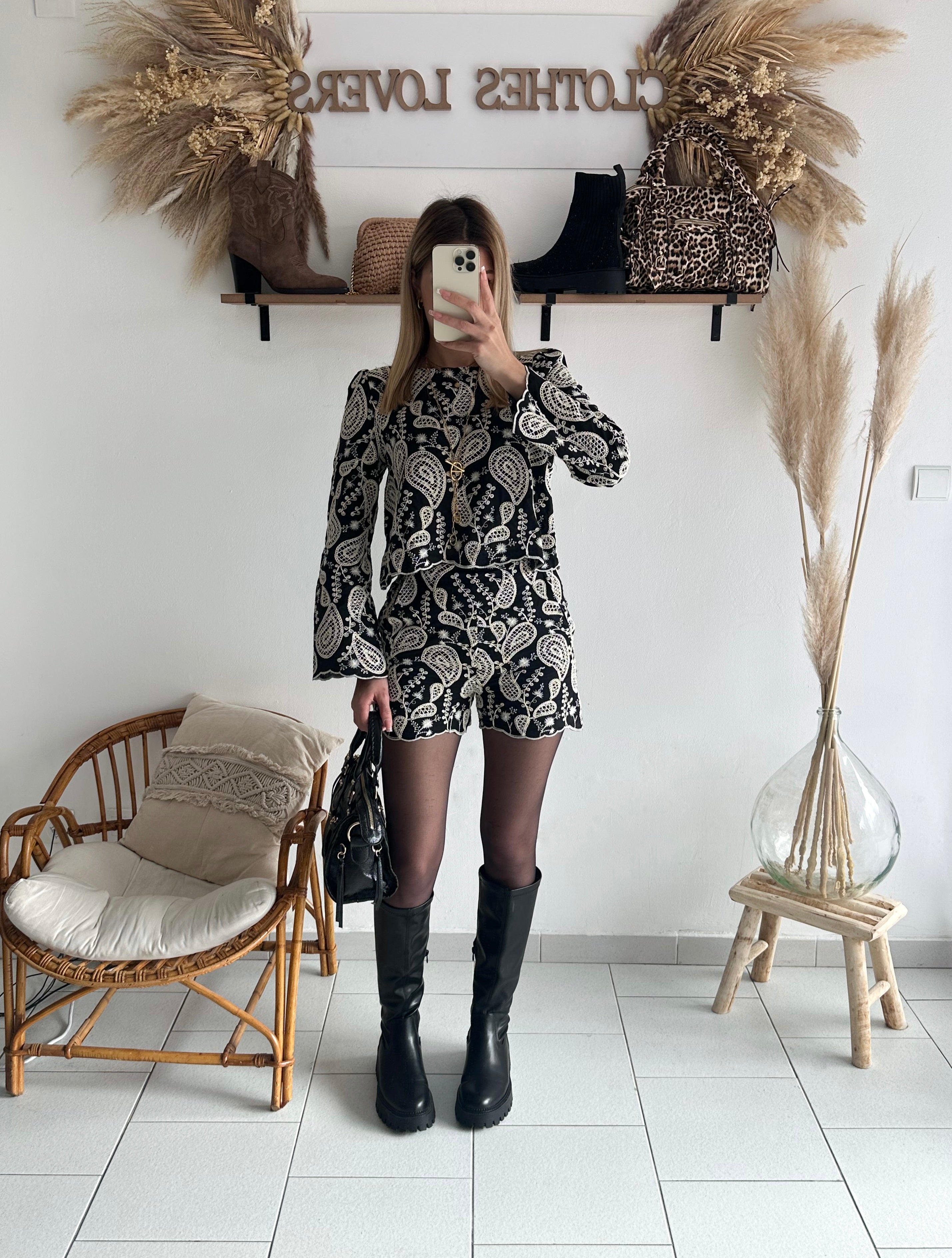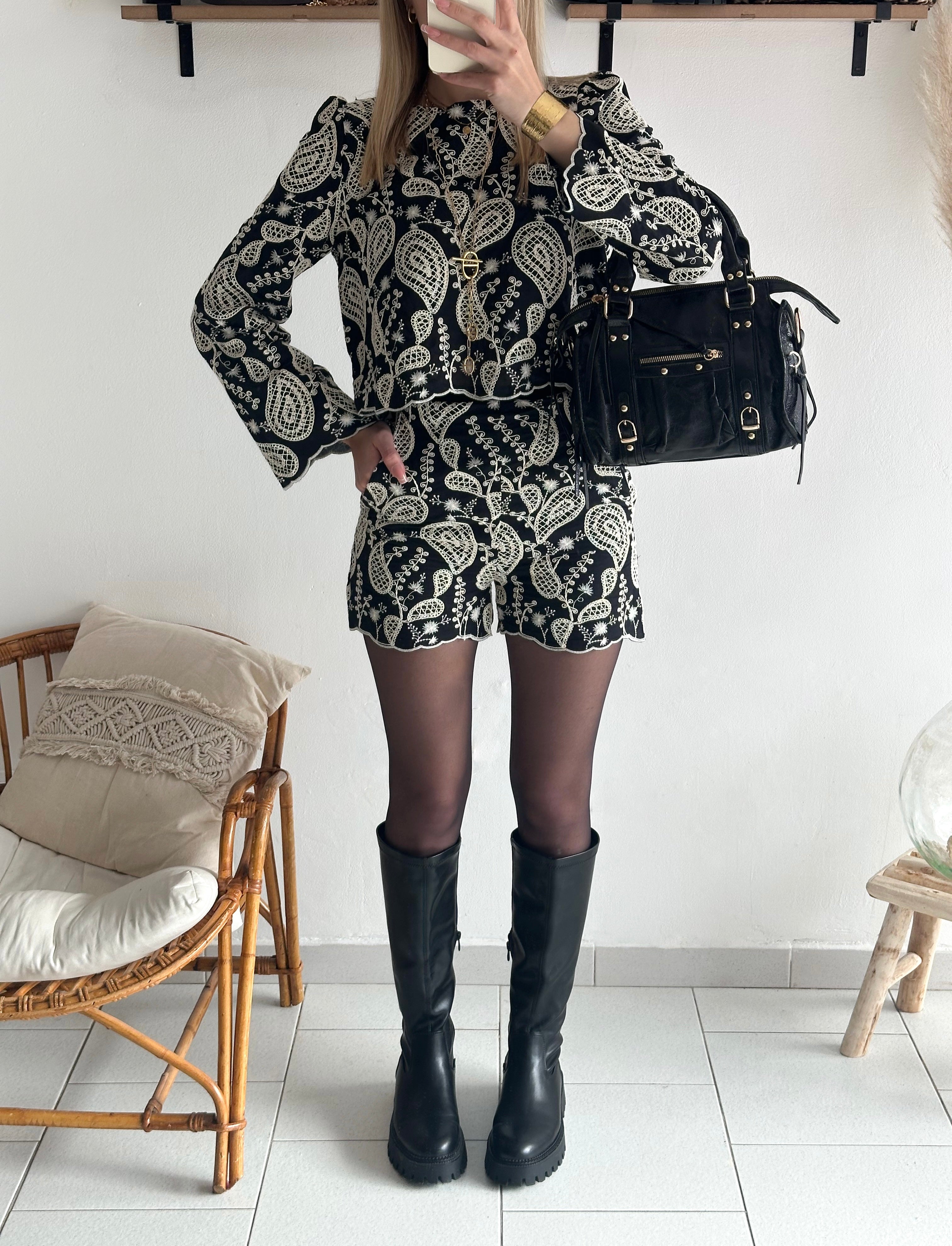 Le mannequin mesure 1m70 et porte une taille S(36).