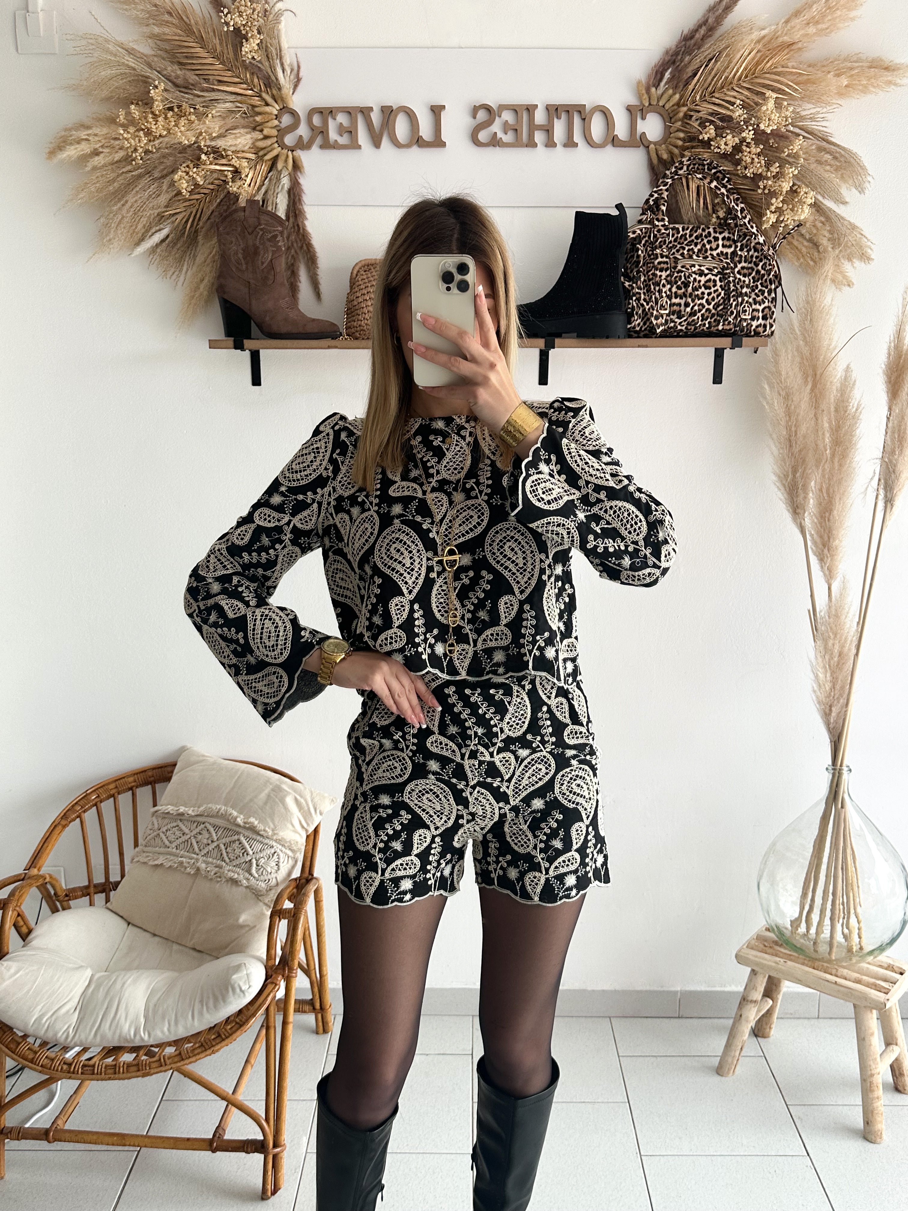 Le mannequin mesure 1m70 et porte une taille S(36).