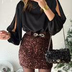 • top satiné avec manches fendues